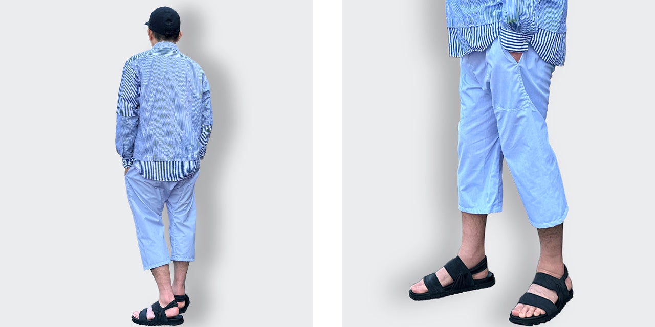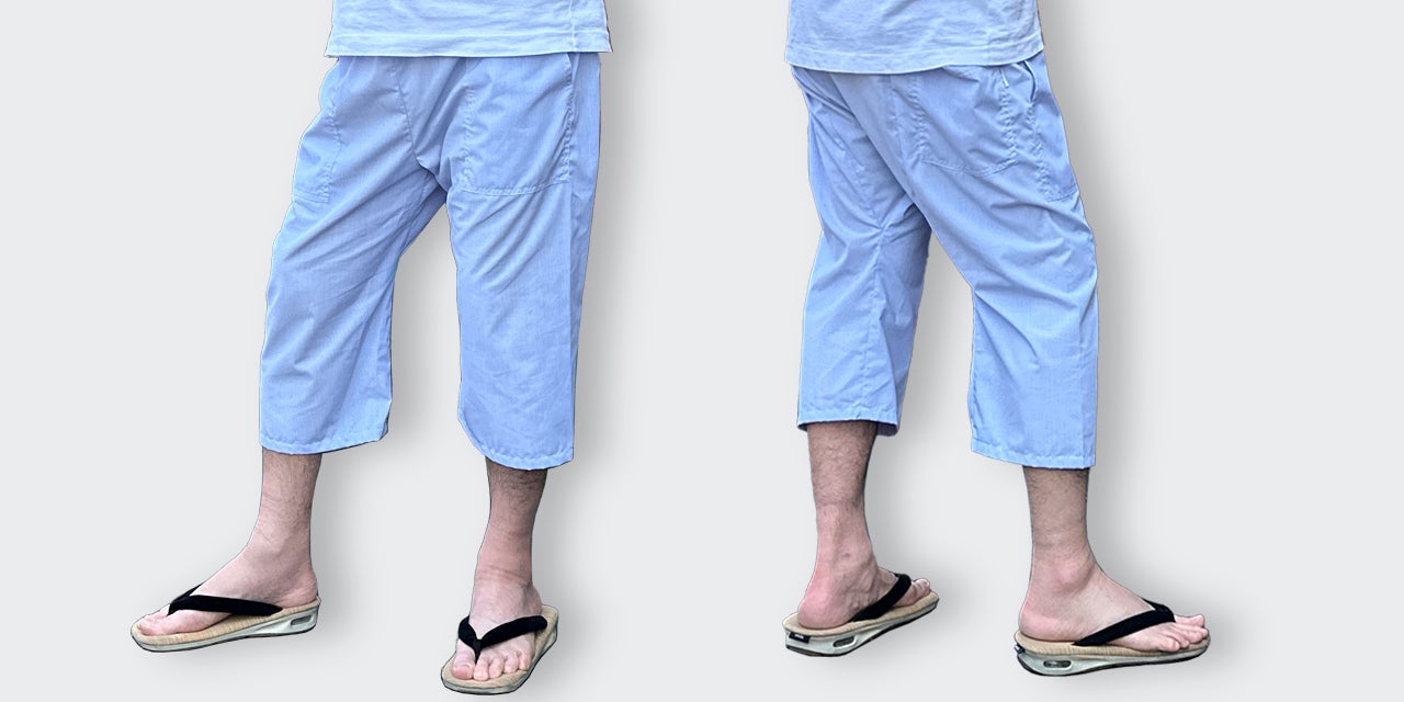 インナーとしてサイジングされた本来のステテコよりひと回り大きいサイズスペックになっていますが、アウターとしてよりゆったり着用する場合は、さらにワンサイズ大きめを選択することもアリだと思います。