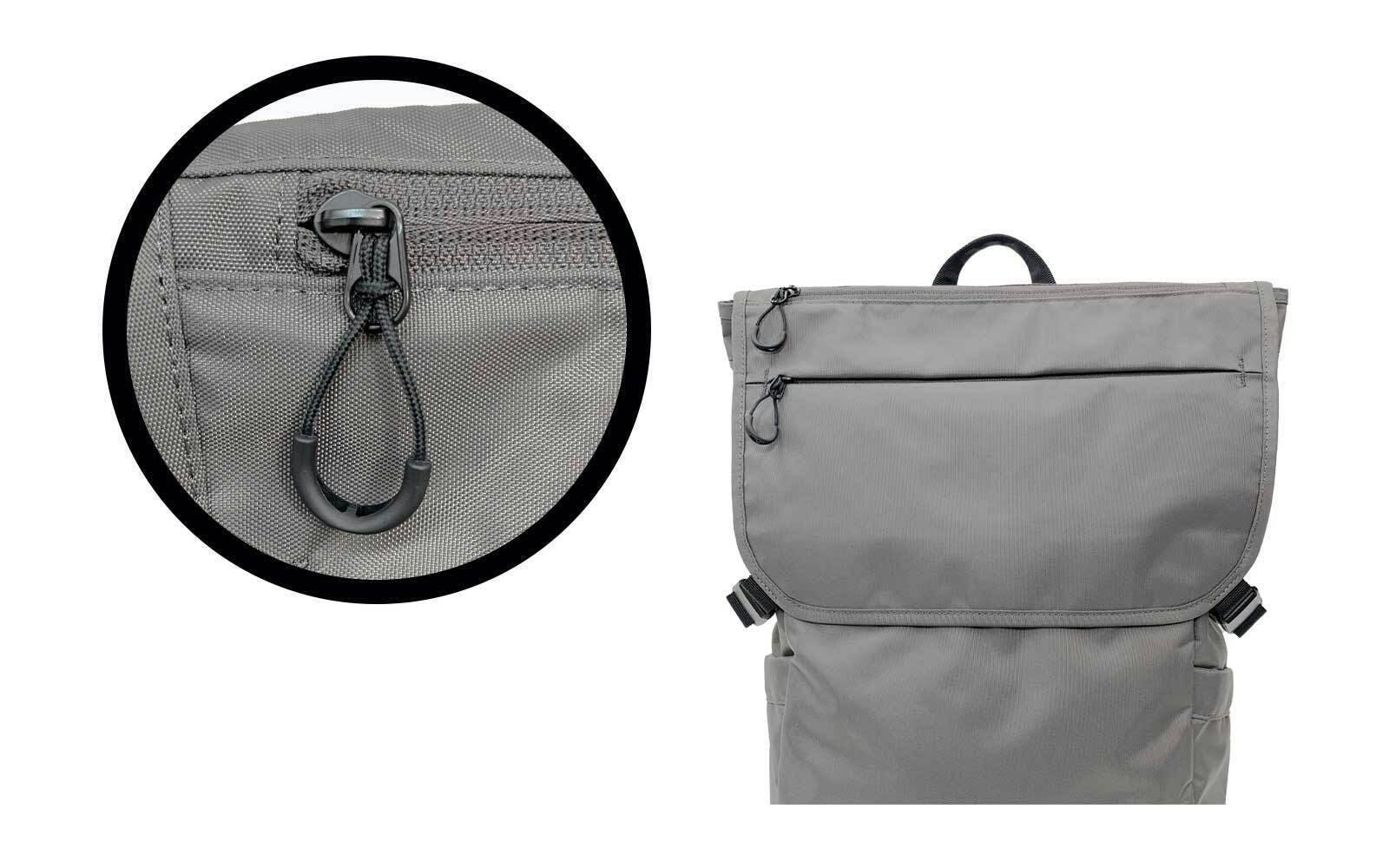 脇下という、目立ちにくいけど取り出しやすい位置にポケットを配置し、両手が空く、というリュックサックの特性を生かしつつ、歩行のジャマにもならず、ファッションに干渉しないデザイン。