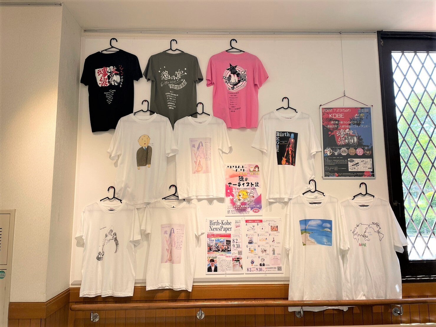 8/1(火)より8/29(火)まで、魂のアーティスト展Vol4~表現する活動拠点Birth神戸~@神戸市しあわせの村温泉健康センター内手のひらギャラリーにてリターンB「BirthKobe-ARTオリジナルTシャツ」を展示しています。皆様お近くにお立ち寄りの際はぜひご覧ください。