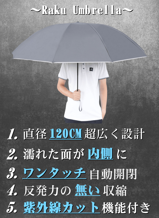「Raku Umbrella」はハンドルを改善すること、柄を楽に縮小することができますし、途中まで弾くことがなくなります。