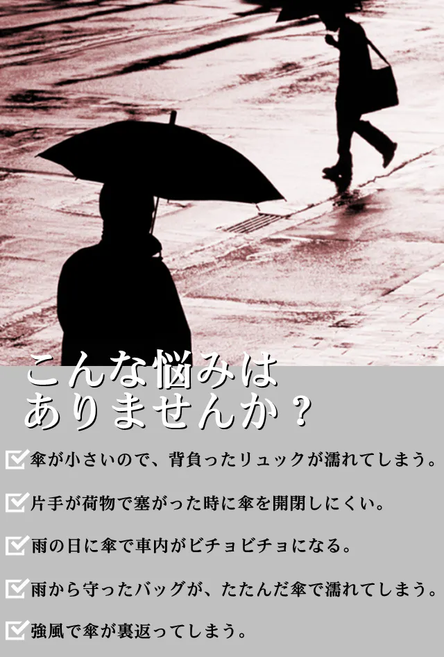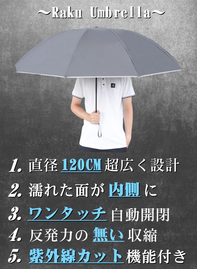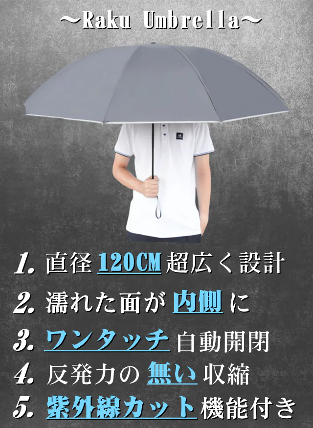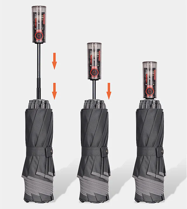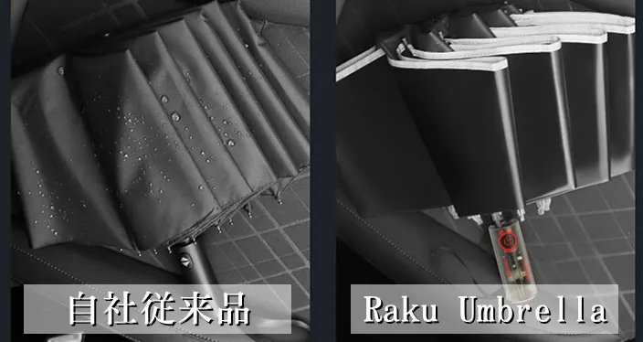 これまで自動開閉折畳傘開く時は勢いよく開きますが、柄を縮小するとき、結構力を入れなければ収納できないです。また柄を途中まで縮小して、力不足で弾く場合があります。女性や年配の方は不便を感じることも多いです。【Raku Umbrella】があれば、傘の収納は楽になります。ぜひ皆様に使っていただきたいです。