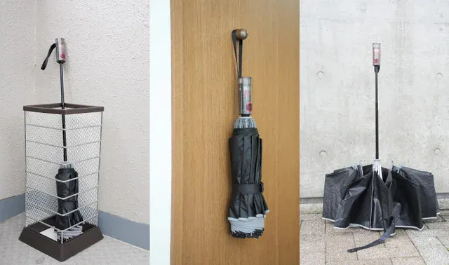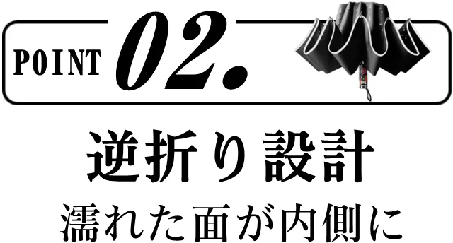 傘を畳むと濡れる部分が内側に!外側が濡れないので他人に迷惑をかけません。車や家から出る時に傘をさしやすく、便利です。