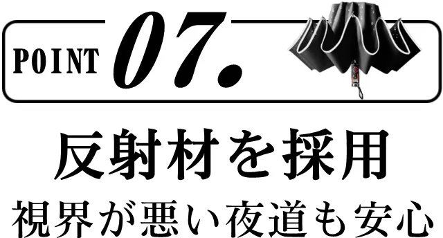 ◎傘の直径が120cmですので、家族4人でも余裕があるほどの大きさです。◎強さと軽さのバランスがある10本骨タイプで、耐久性に優れた防風構造になっています。◎反射材付きで傘は暗い夜道でもドライバーからの視認性を高めて事故の危険を減らしてくれます。