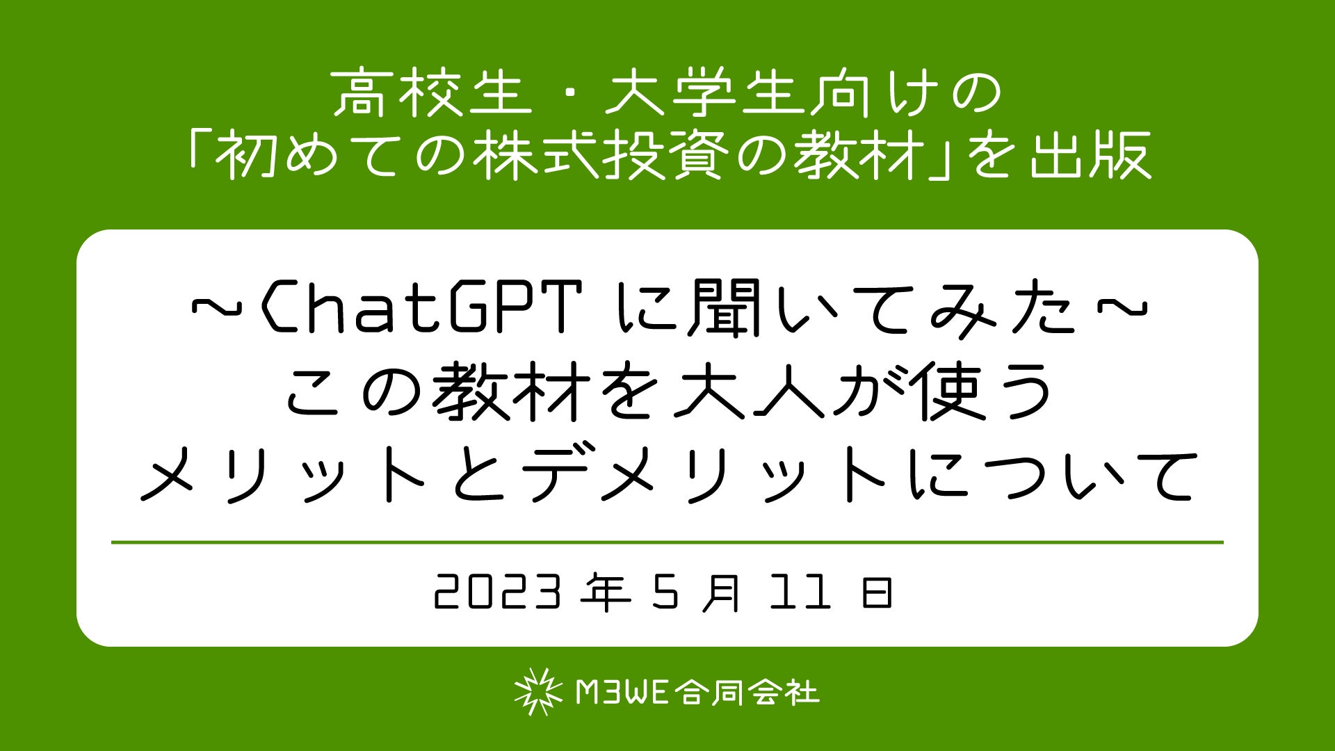 本プロジェクトにご支援及びご興味をお持ちいただきありがとうございます。M3WEの盛田 祐代です。本日、プロジェクトページを更新しましたのでご案内します。ぜひご覧ください。https://camp-fire.jp/projects/view/668448ーーーーー更新内容オリジナルテキストの目次についてリターン品の1つである「オリジナルテキスト」の目次に関する情報を公開しました。全4章で構成する予定です。・第1章:株式投資って何? 学生のうちから投資をするメリット・第2章:恋愛から株式投資を学ぶ(15項目程度解説)・第3章:株価チャートについて学ぼう(ローソク足、トレンドラインなど)・第4章:投資ノートをつける意味・利用方法詳細はプロジェクトページにて、文字コンテンツ及び動画にてご案内しています。こちらもご覧ください。ーーーーープロジェクトの締切まで2週間を切りました。ぜひ、ご興味のある方にも、本プロジェクトをご紹介していただけると幸いです。どうぞよろしくお願いいたします。
