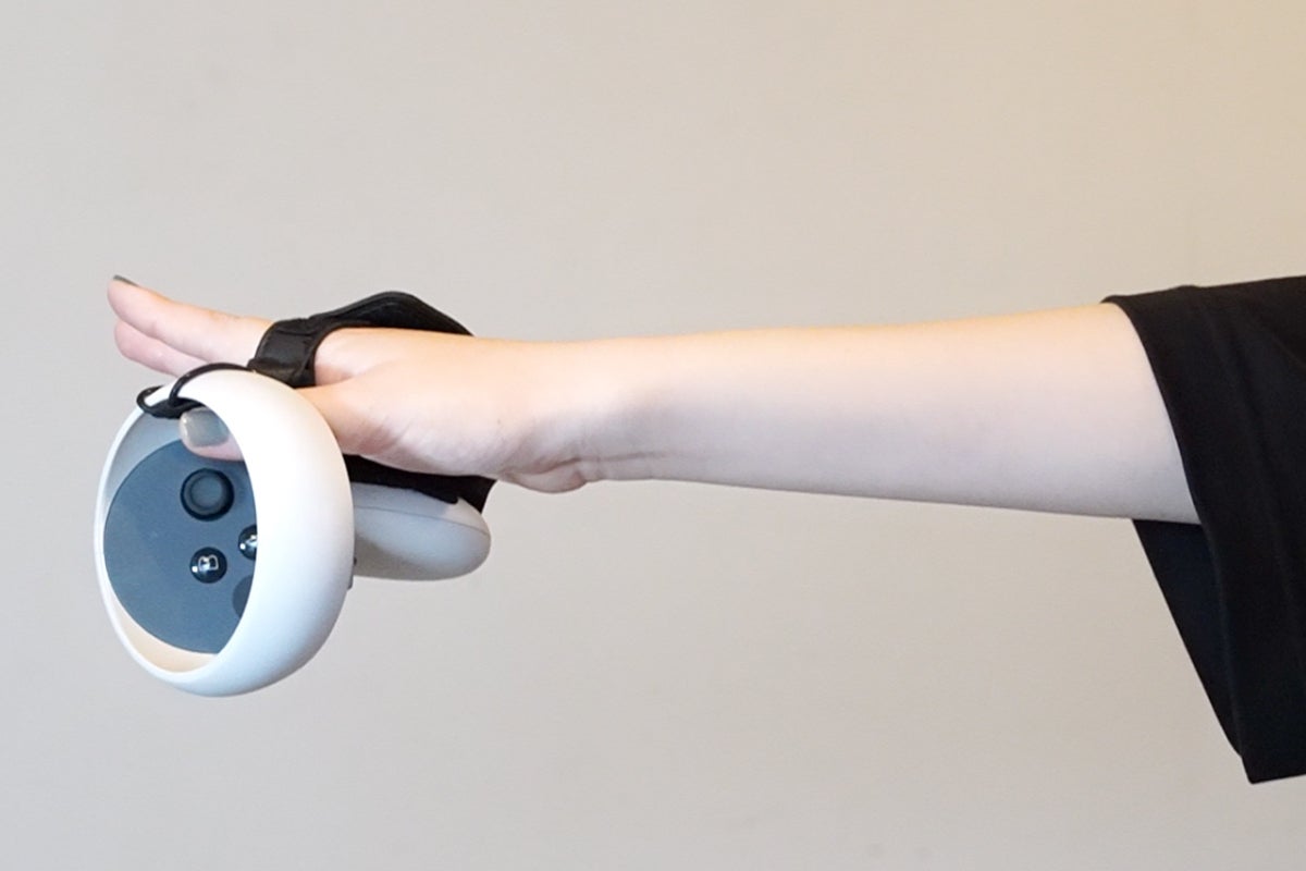 VRゲーム中、現実世界のモノを掴むには、コントローラーを一度机上に置いたり、手首のストラップを使ってぶら下げたりしないとモノがつかめません。視界が悪くなるVRゴーグル中は、こういう動作がとてもめんどくさい・・
