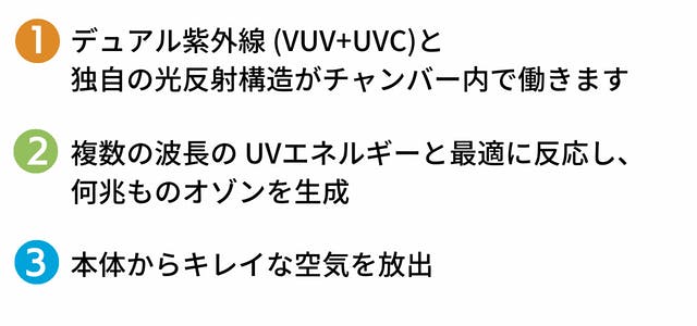 BRISE新技術のVUVライトで、清掃や交換が必要なフィルターを使用せず、次世代空気清浄機です。