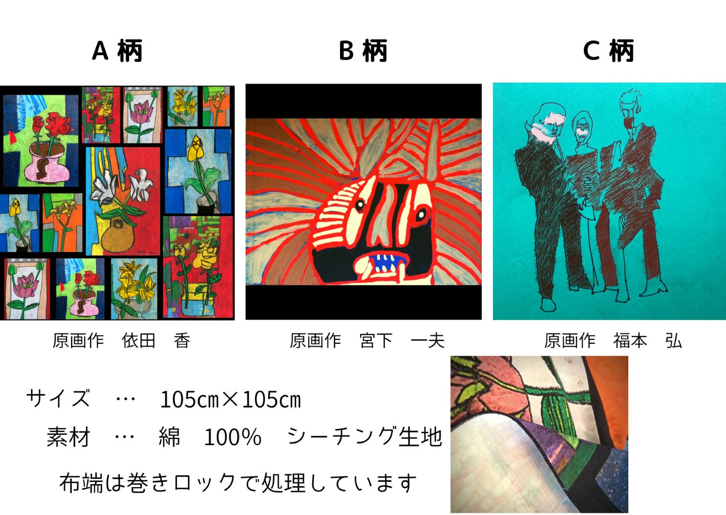 「風の工房」利用者さんの作品を布地プリントし、布生地として当店で販売します。(ネットでの販売も予定しております。)