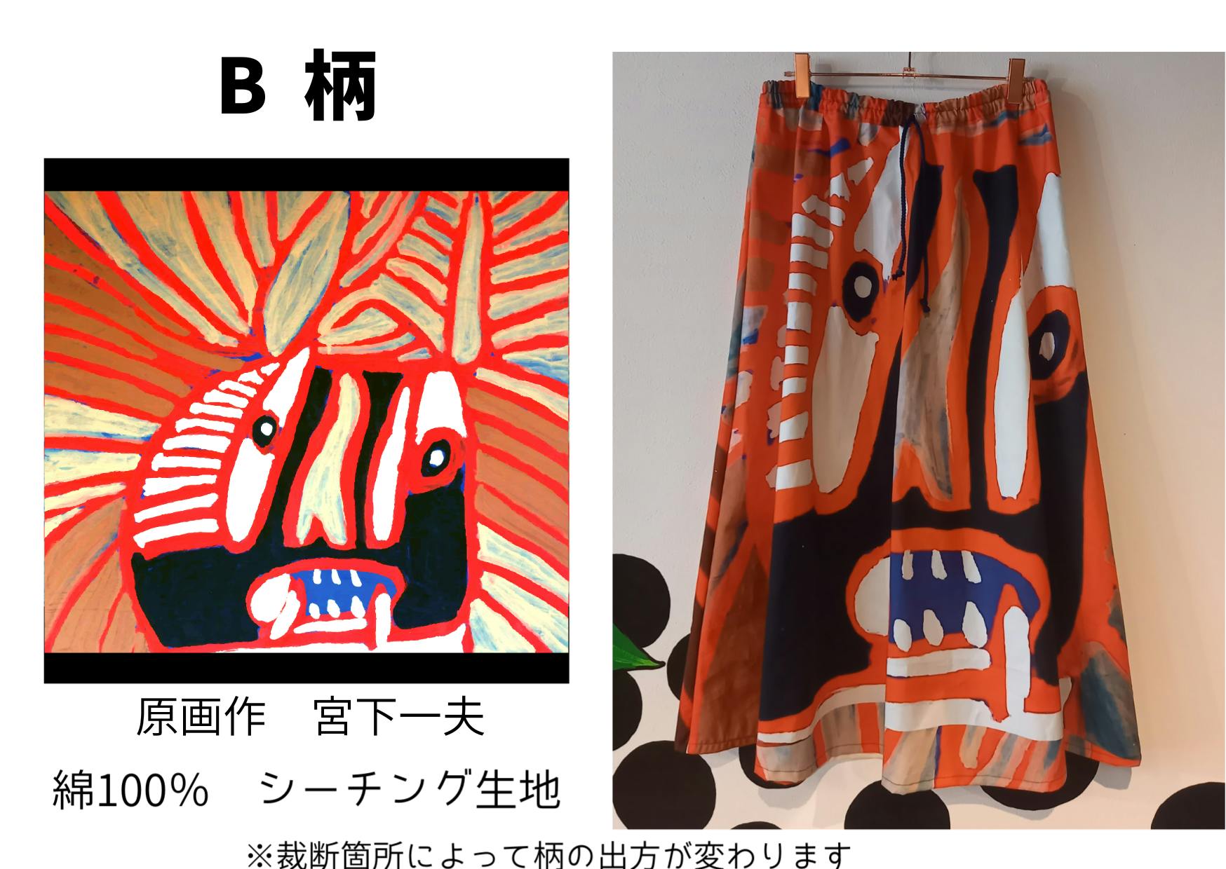 実際に風の工房へ訪問したところ、沢山の作品が作品庫に保管されていました。コロナ以前は、展示会や販売会を行っていましたが、今はそのような機会も減ってしまったそうです。どれも素敵な作品なのに、多くの人の目に触れてもらえる機会が少ないことはとても残念です。そこで私は、布生地にすることでこの個性的な作品たちをもっと多くの人に知ってもらい、洋服や雑貨として身近に感じてもらえれば素敵だと考えました。