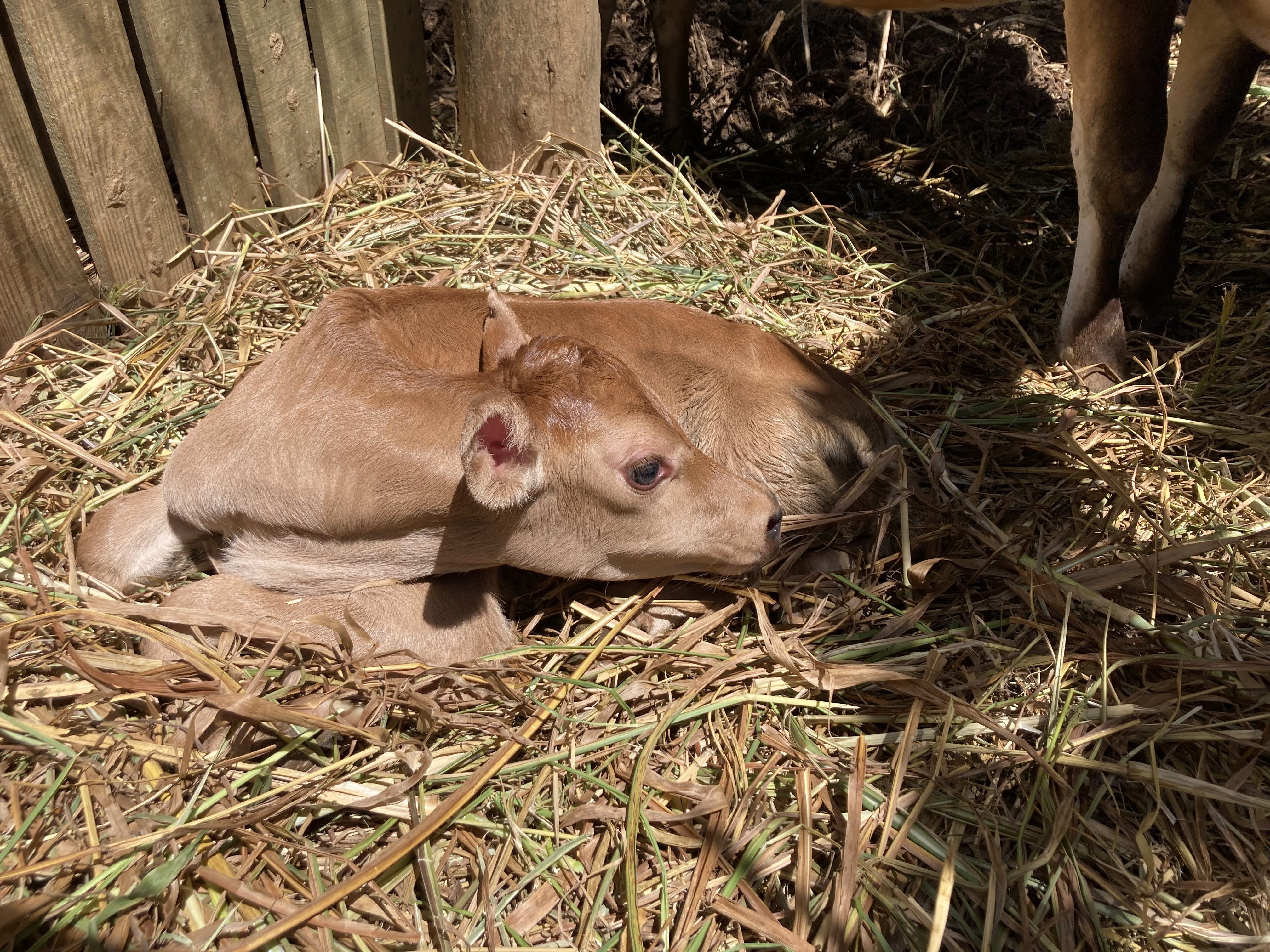残暑お見舞い申し上げます。台風6号・7号の被害に遭われた方にはお見舞い申し上げます。ツンフグ牧場の停電は、17時間程度で復旧しました。長い時間雨風が続いたので、動物たちは落ち着かなかったと思います。大きな被害は無く、生まれて3週間だった子牛の「でんこ」も元気にしていますよ!さて、そんな台風6号通過の真っ只中に、沖縄タイムスさんに掲載されていたようです。暴風警報発令中は新聞は配達されないため、気付かなかった方が多いでしょうね(;^ω^)&飛行機も飛ばないから、宮古島に届いたのは一体いつだったのか…。今日、記者さんがわざわざ持って来てくれました。宮古在住の記者さんは牛乳通のようで、県産牛乳の季節の味の違い、各社の味の違いも教えてくれました!こりゃー、うちの牛乳を飲んでもらうのが楽しみだ٩( ''ω'' )و(搾乳開始時に、また取材してもらえることになっています)台風によるリスケジュールで遅れてはおりますが、ご支援いただいた皆様に必ず牛乳をお届けできるよう頑張ります。8月12日に生後1か月をむかえた「でんこ」お母さんのおっぱいを飲んだ直後でおひげが白い♡