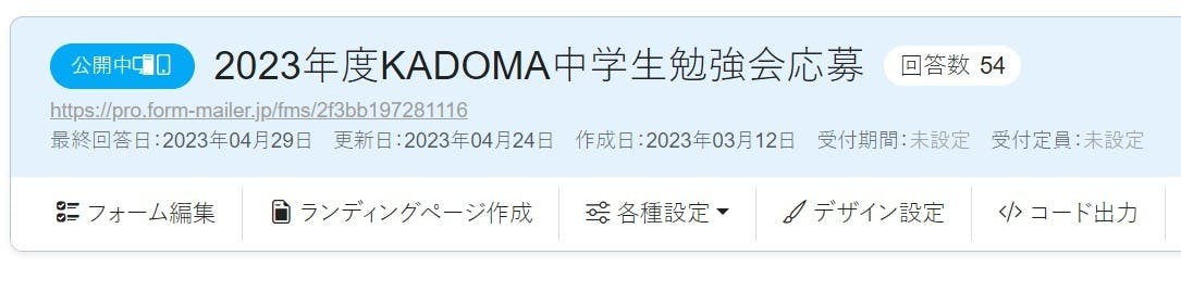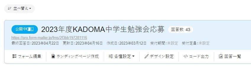 2023年度生徒募集状況(4/22正午時点)