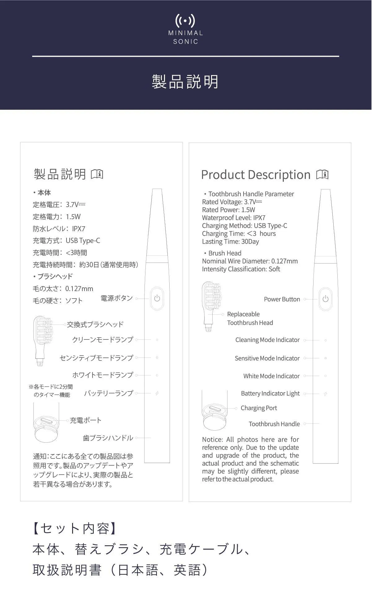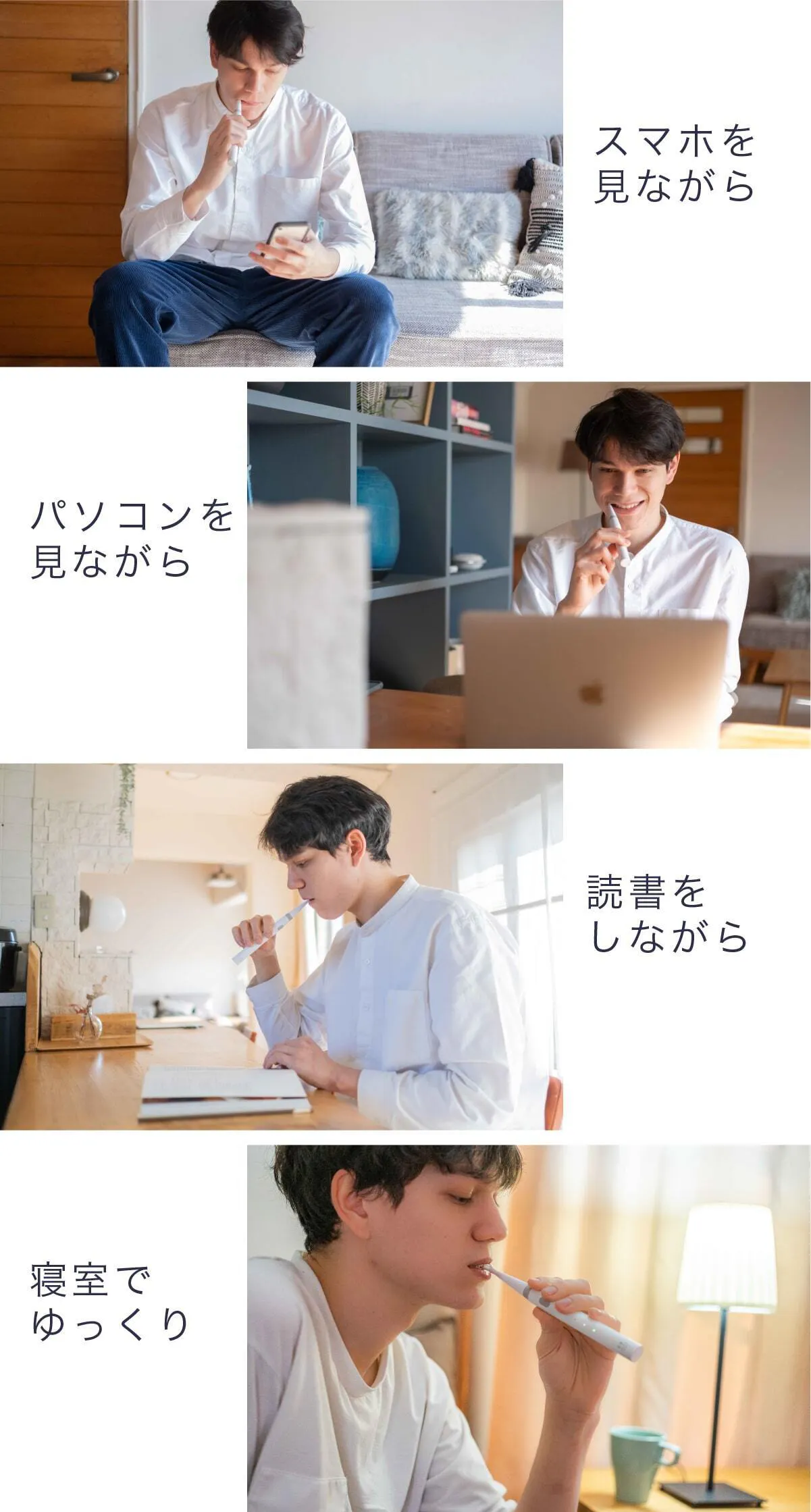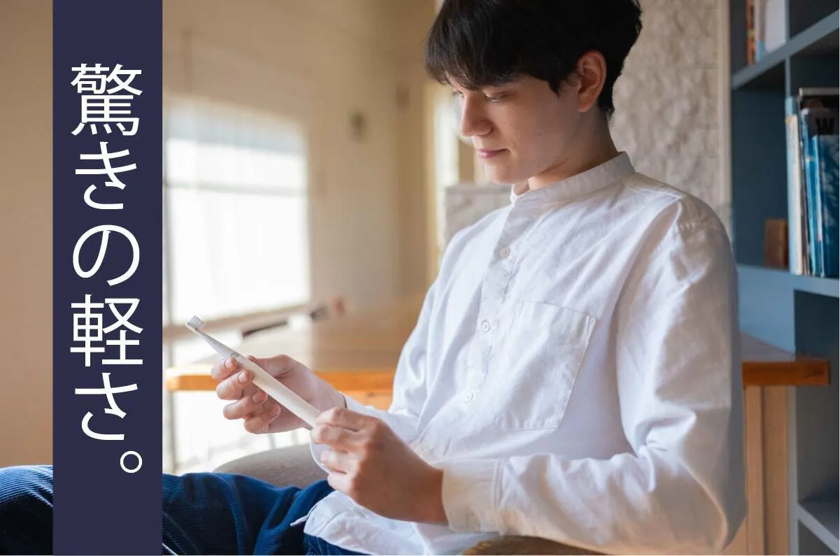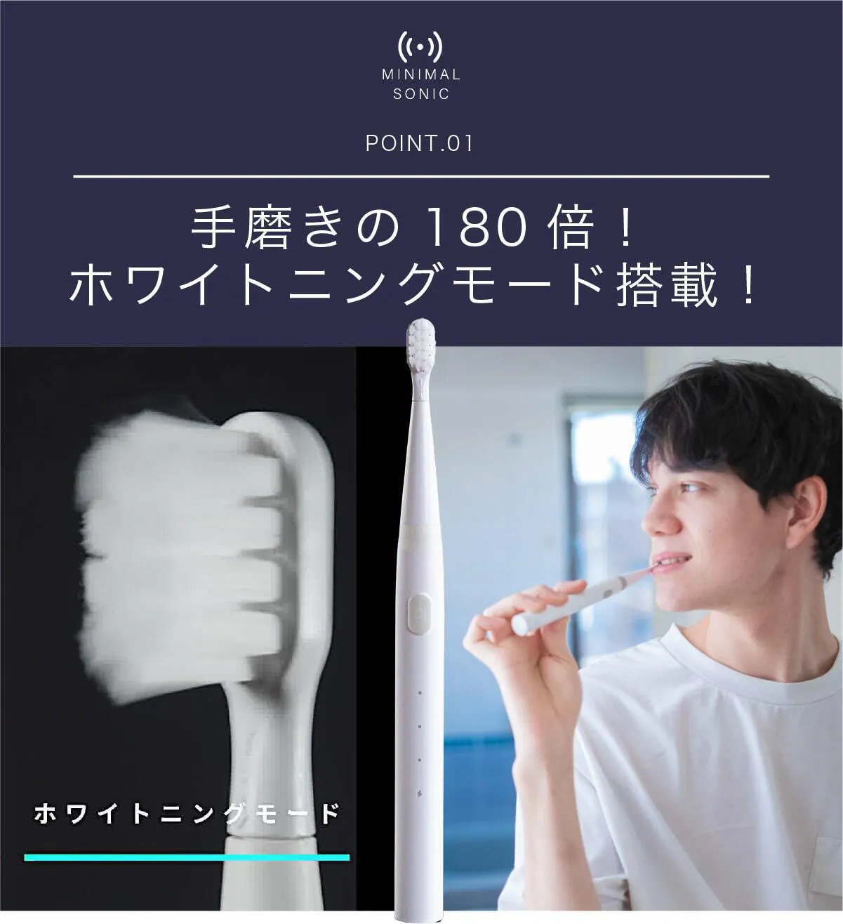 今までの電動歯ブラシを大きいと感じたことはありませんか?普通の歯ブラシから電動歯ブラシに変えた時にそれを大きく感じると思います。電動歯ブラシは構造上、大型化してしまうのですが、常識に囚われずまったく新しい電動歯ブラシを設計したのがこのミニマルソニックです。画期的な構造で小型でパワフル。未来の体験をはじめましょう。