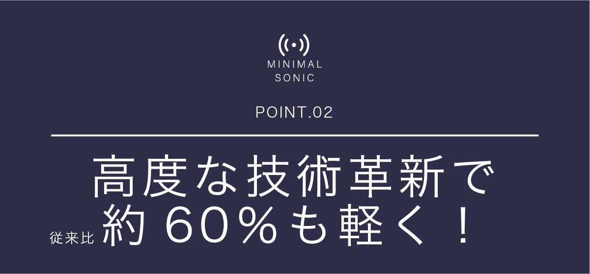 ミニマルソニックはパワフルなだけでなく、そのパワーを小さなボディに収めることに成功しました。高度な技術革新で約60%も軽くすることができたのです。
