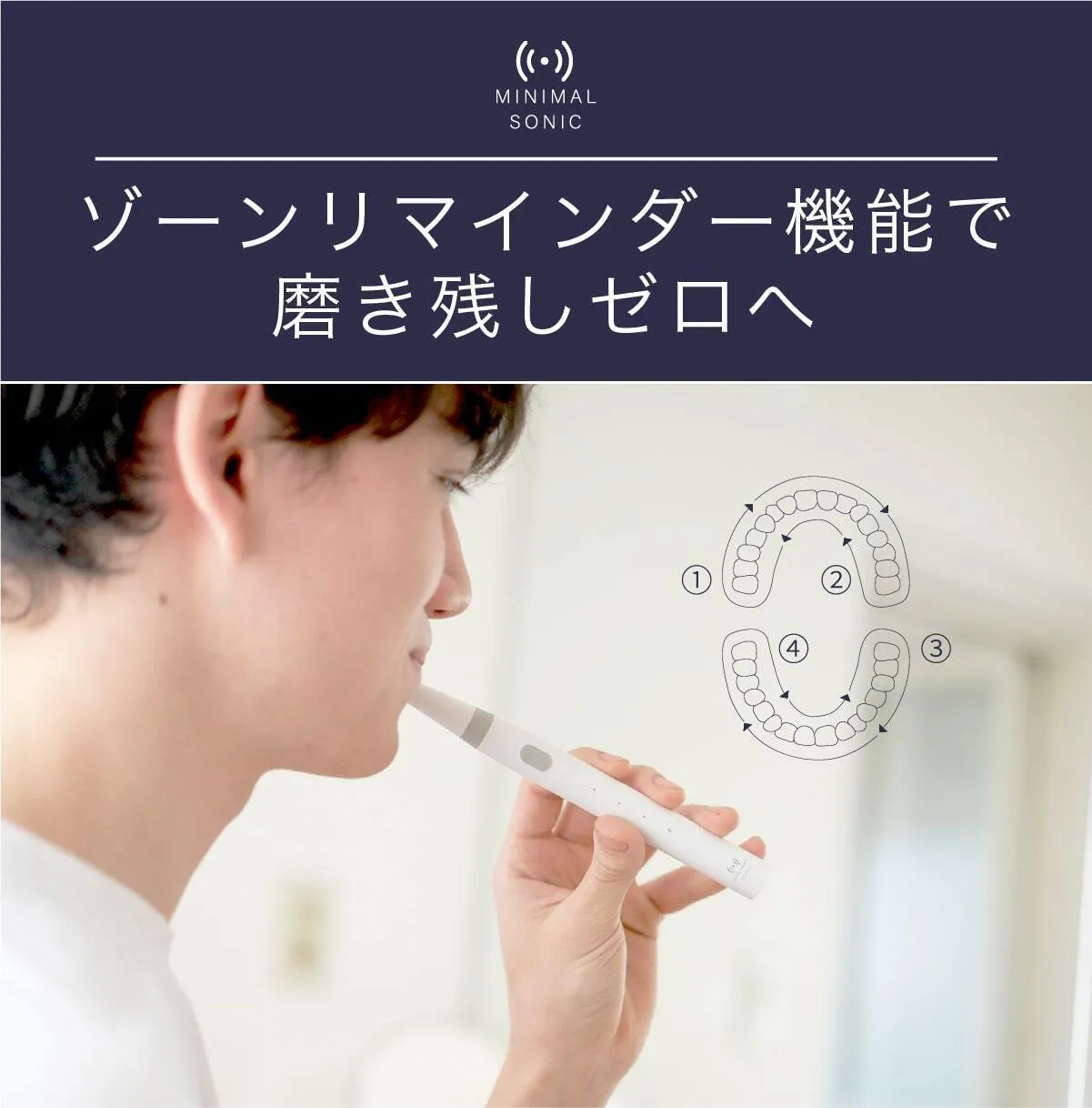 手磨きだと「歯のどの部分をどれだけ磨いたか?」がわかりにくいと思いませんか?ミニマルソニックはゾーンリマインダー機能を搭載しました。