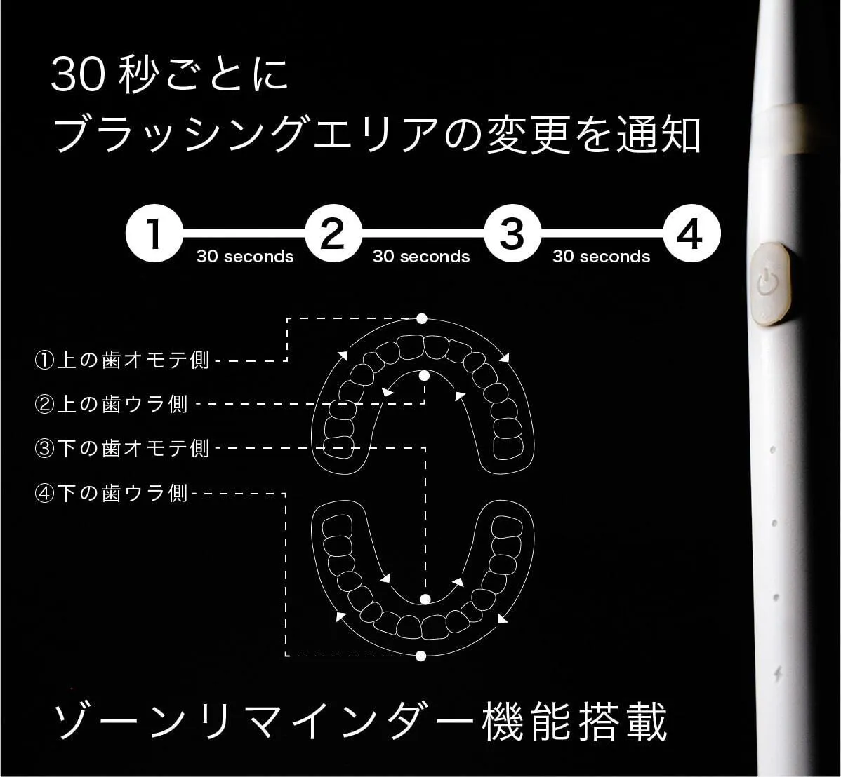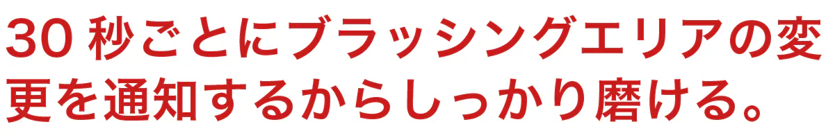 ゾーンリマインダー機能であなたが30秒磨く毎にバイブレーション通知が。上下と表裏の4箇所をしっかり磨くことができます。