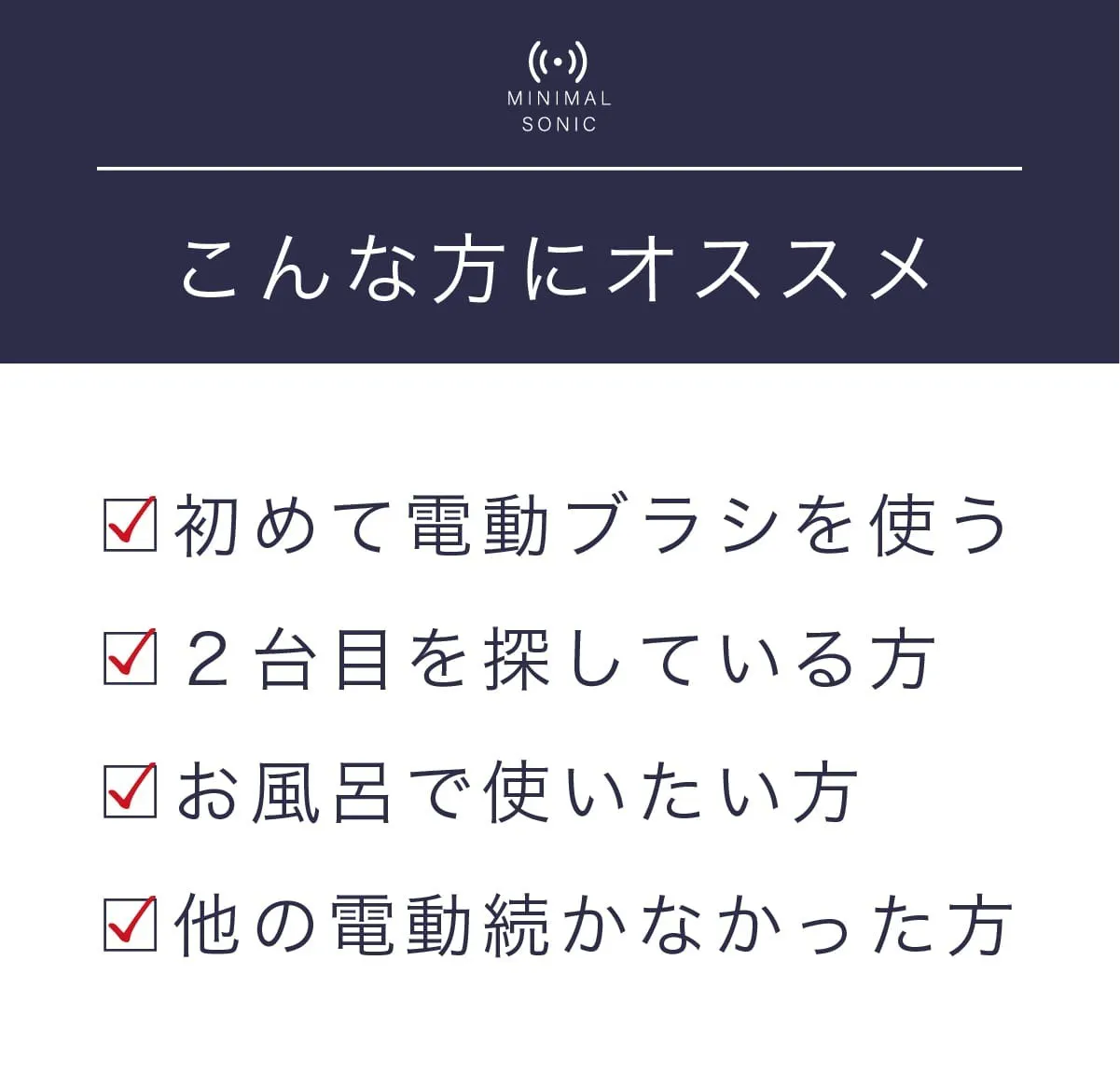 私達は日本の電動歯ブラシ普及率22%をなんとかしたいと考え、ミニマルソニックを誕生させました。口腔内のケアは大変重要なものであるにも関わらず、そのツールの進歩はまだまだです。ミニマルソニックが少しでも日本の電動歯ブラシ普及のきっかけになれば大変嬉しいです。