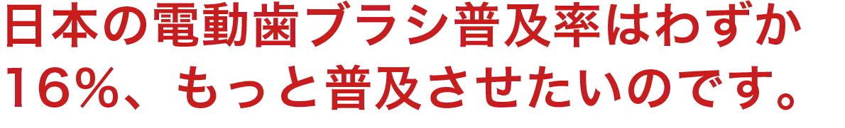 電動歯ブラシの普及率はドイツの53.0%、アメリカの39.0%と比べて、日本は16%と言われています。まだまだ普及が必要だと私達は考えミニマルソニックが普及のきっかけになればと思っています。