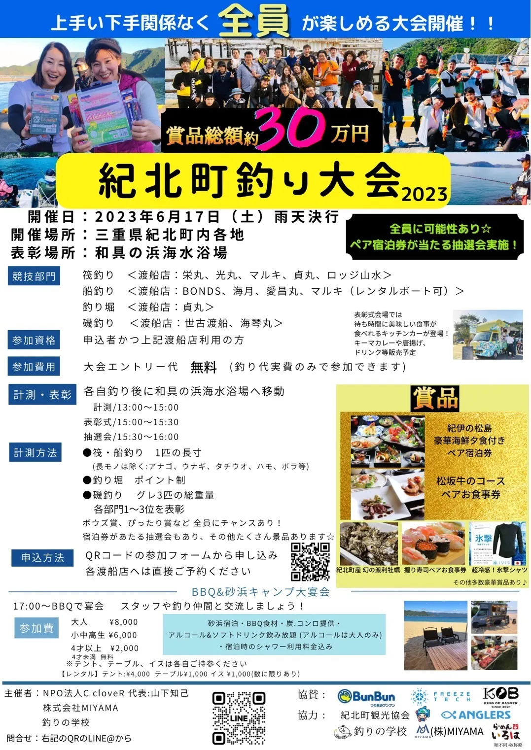 紀北町にある釣り船の4ジャンルで釣り大会を同時開催します。