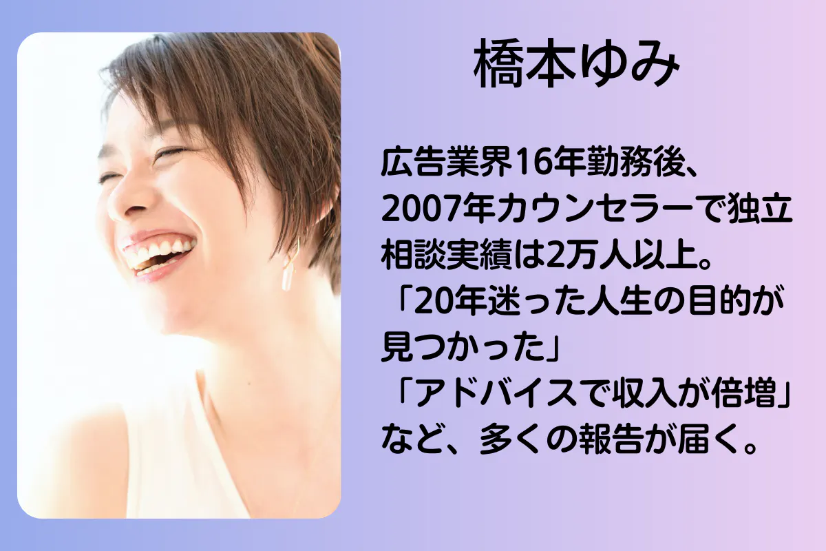 独立後は2万人以上の方の相談に乗り、「腑に落ちる」「疑問が解けた」と好評を得ています。現在はオンラインで学べる「自分軸プログラム」などを開設し、この講座を受講された方からは