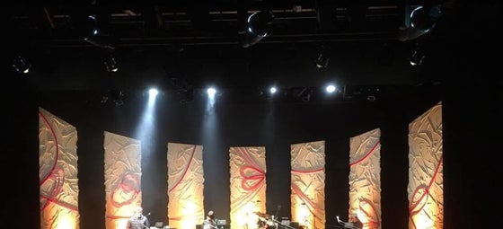 今回生の和楽器12弦琴、笛、鼓と三人の美しい大和なでしこが舞台中央にお雛様の様に板付き モデル、ダンサーは演奏者と絡むイメージでコラボ、一体感を強調します。