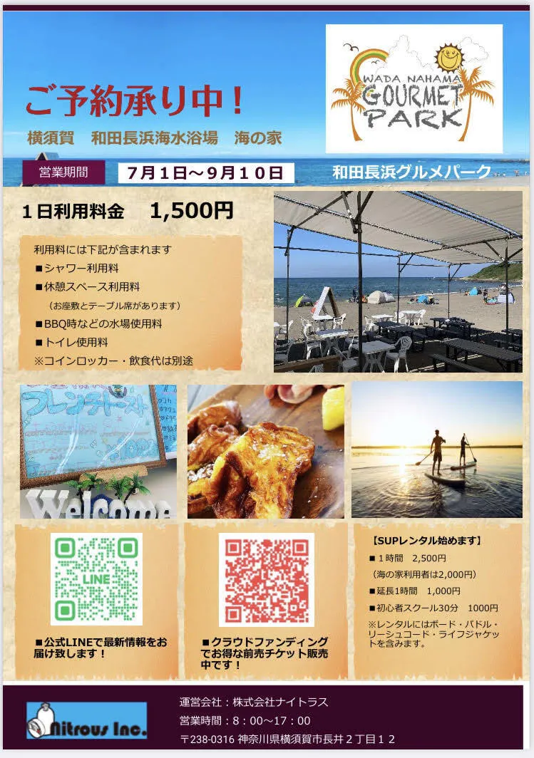 私どもは長年にわたって横須賀市和田長浜海水浴場にて海の家を運営しております株式会社Nitrousと申します。