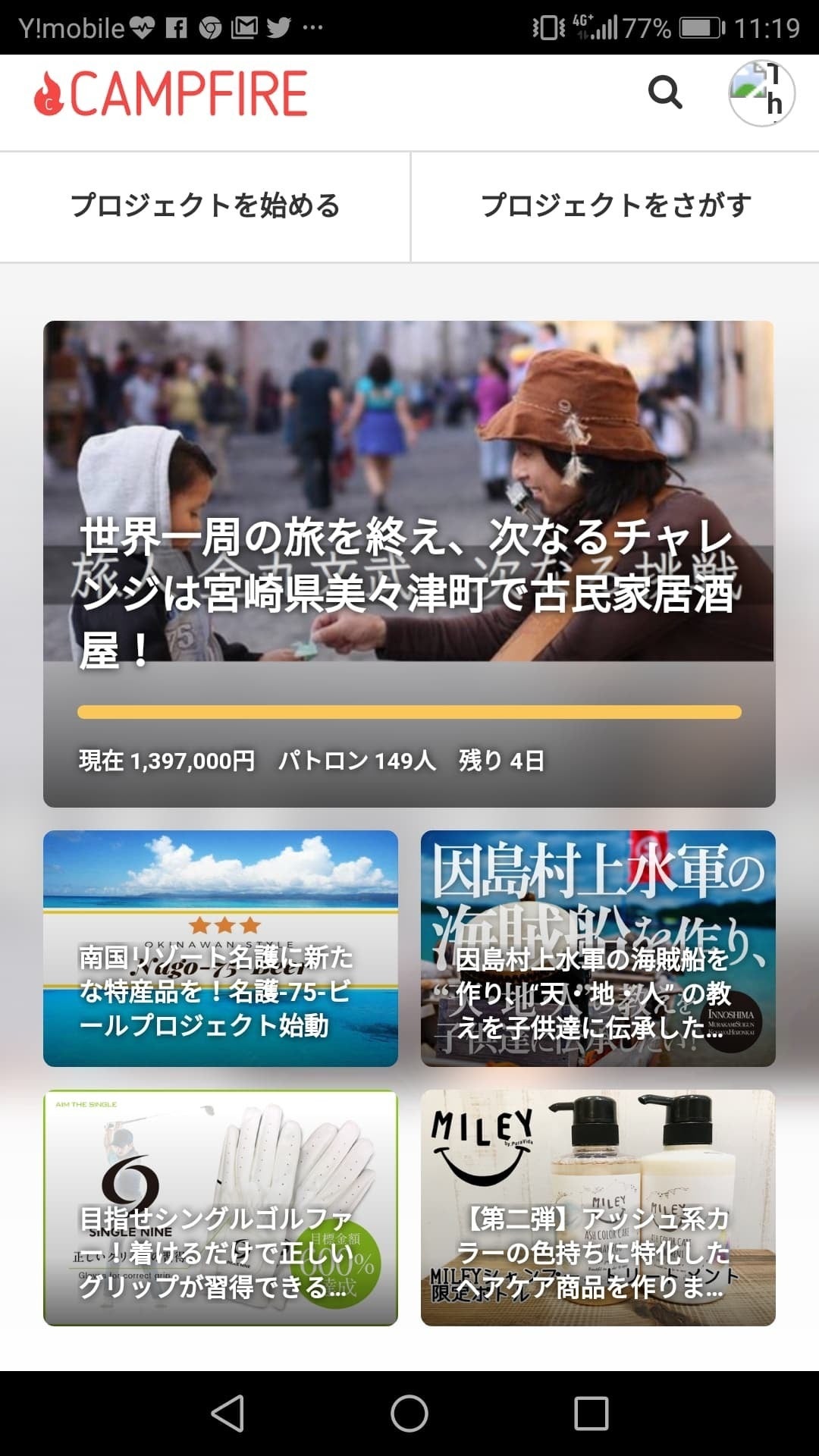 キャンプファイヤーのトップページにも掲載していただき注目度UPしていただいております。