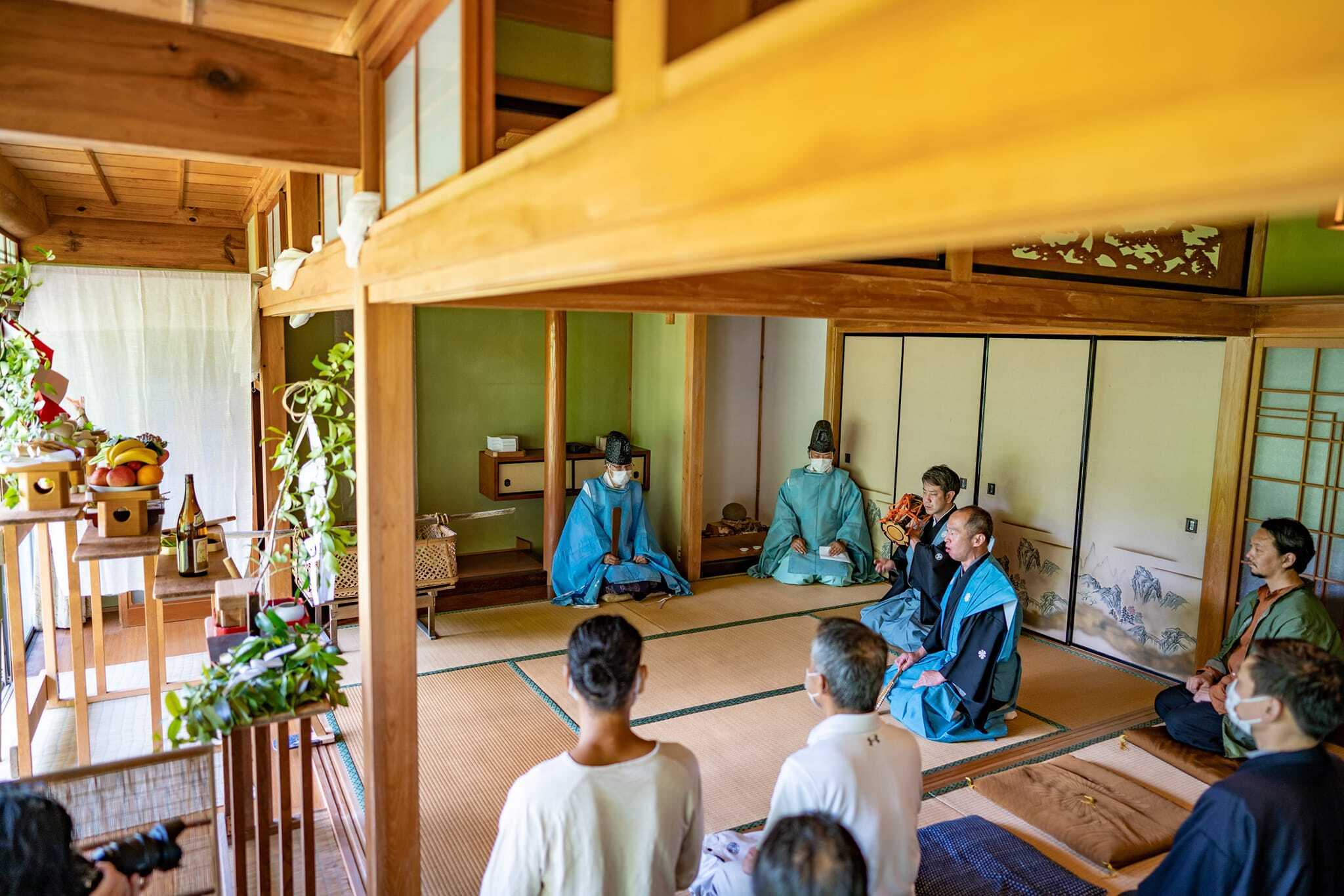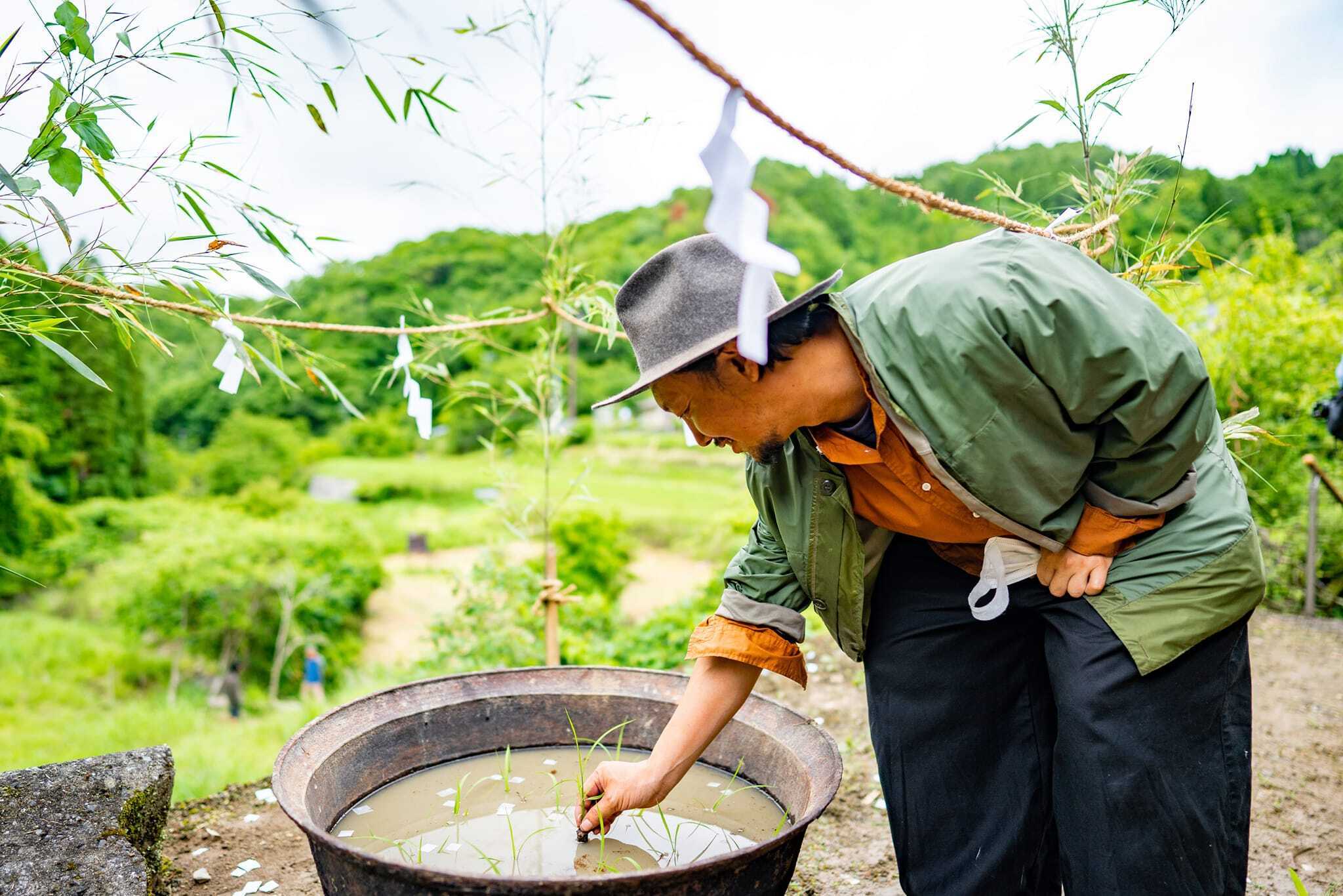 2023/06/14 07:43先日6月6日に兵庫県佐用町桜山にて、御田植祭を開催いたしました。途中からの雨のため、室内への移動となり、棚田での三番三は観れませんでしたが、しっかり今年の豊作に向けた芸の奉納とご神事は出来たと思います。こんな近くで狂言の舞を見たのは初めてで、演者の方の息づかいや指先の所作、足運びまでを細かく見ながら、迫力の竜笛や鼓の音色を全身で感じる時間となりました。いろいろとやり残した気持ちとお楽しみはまた来年という気持ちで...今回の御田植祭は、クラウドファンディングのご支援により開催できました。応援して頂いた皆様、本当にありがとうございました。そして、芸能奉納していただいた皆様も、ありがとうございます。いよいよ今年の宿神shuku-jinづくりが始まります。これから本格的な田植えをして、11月には収穫、そして、来年の3月には次のお酒の蔵出しとなります。ぜひ引き続き、応援のほどよろしくお願いいたします。[出演者の皆さま]三味線奉納 坂田淳尺八奉納 石原瀞山三番三奉納狂言方:善竹 忠亮笛方:斉藤 敦小鼓方:上田敦史大鼓方:森山泰幸ワキ方:江崎欽次朗祝詞 大避神社 生浪島宮司photo by 玉利 康延 もっと見る