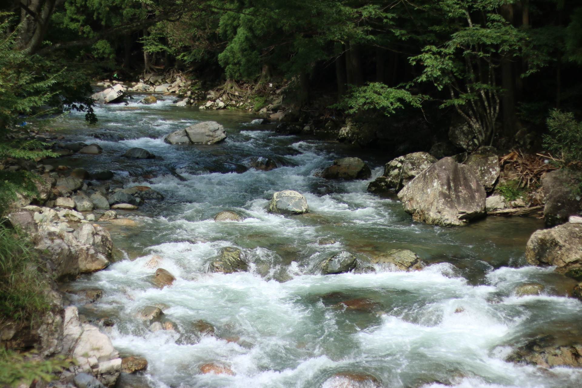 夏でも冷たい水が流れ、鮎が泳ぎ、オオサンショウウオなどが生息する川です。
