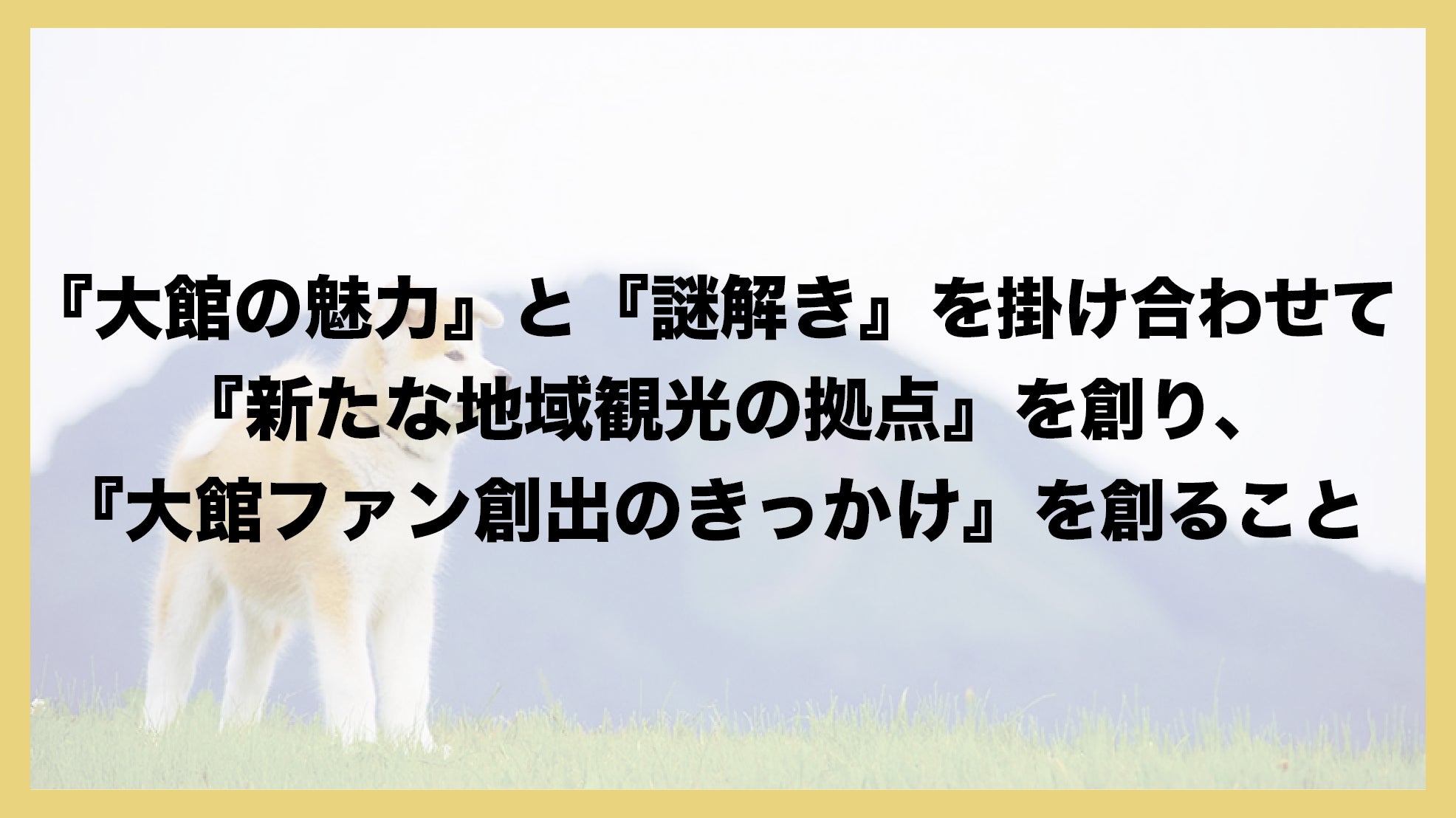 「謎解き」を通して地元「大館の魅力を発信」することで「新たな観光客」を呼べるのではないか?