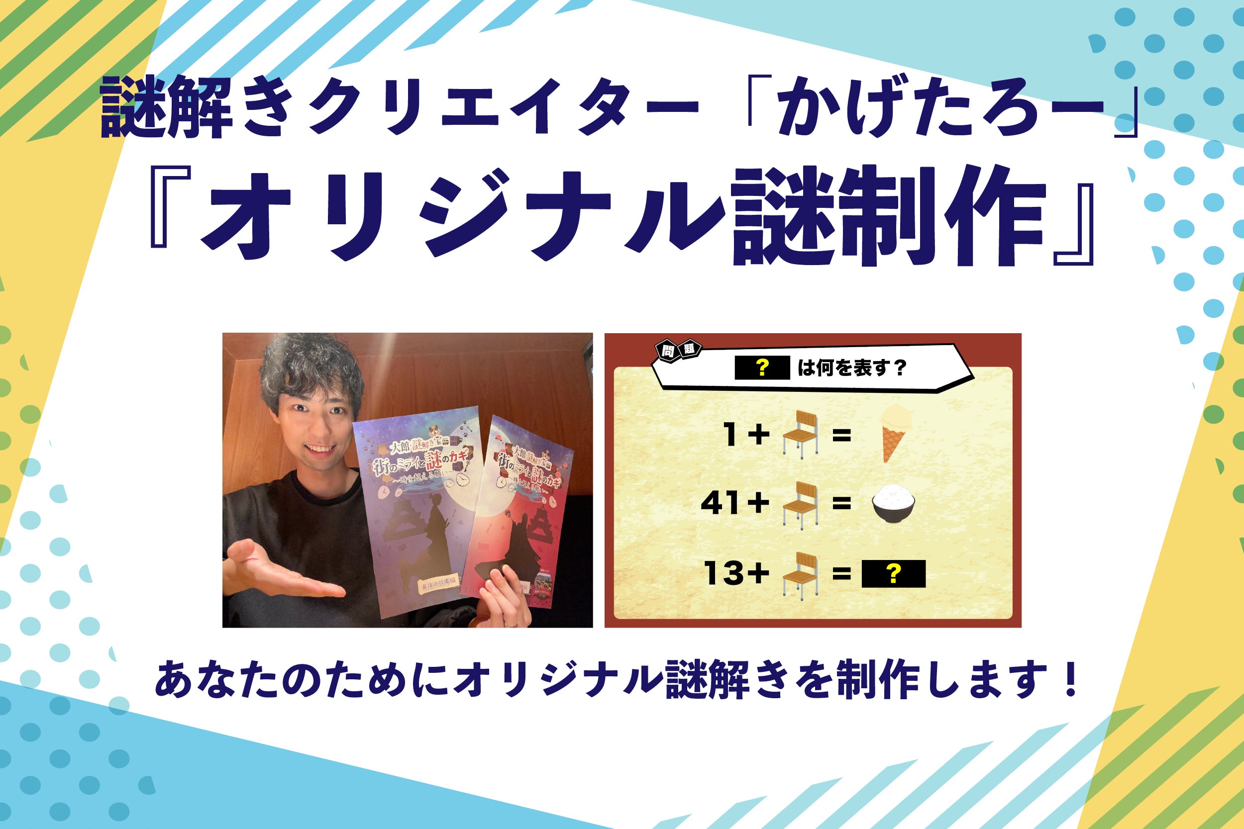 謎解きクリエイターかげたろーが、あなただけのオリジナル謎を制作します。謎解きが好きな方や、記念日やパーティーなどでオリジナルの謎解きを楽しみたい、という方におすすめです!