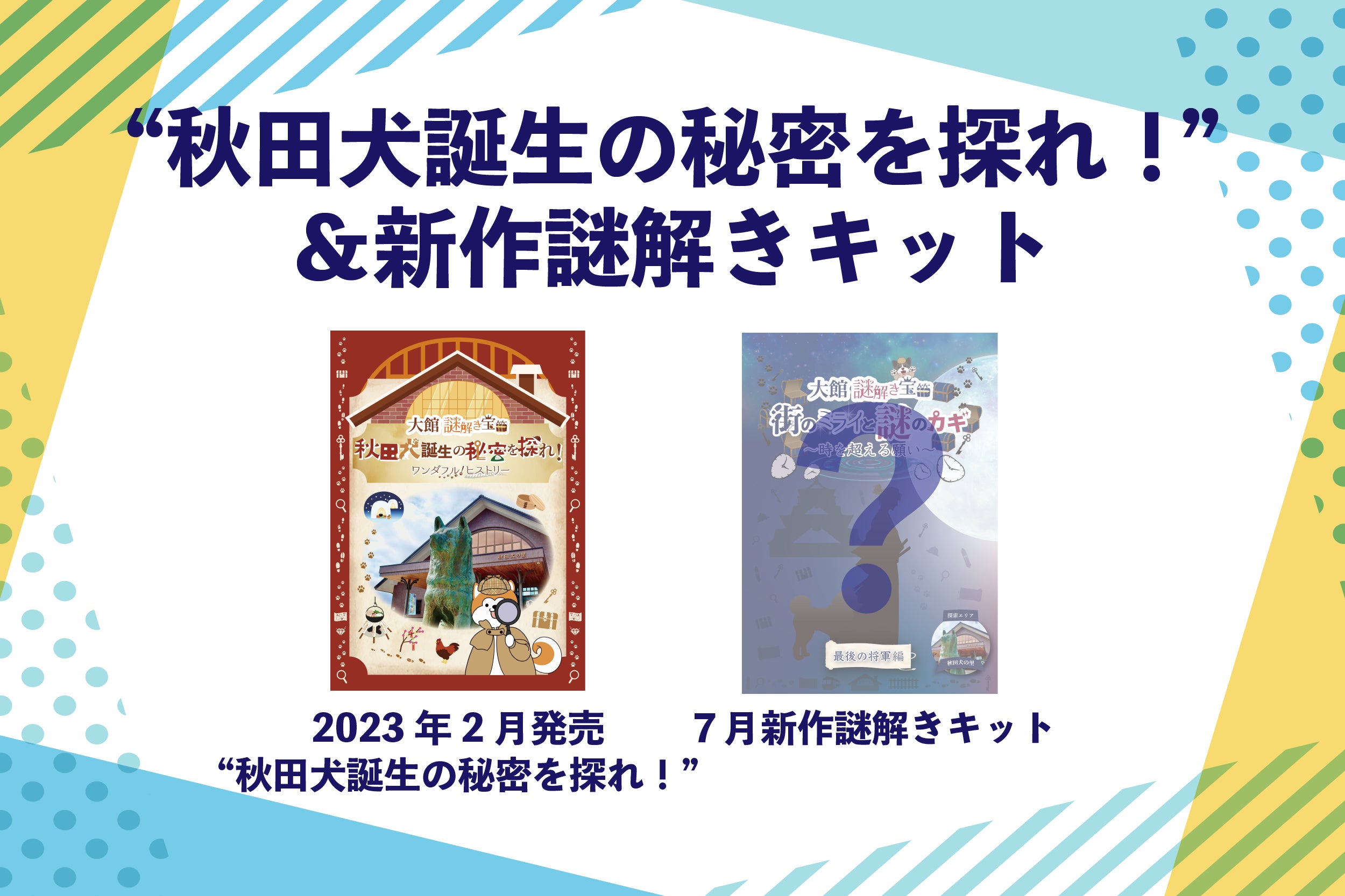 大館市を周遊しながら楽しめる新作謎解きキットと一緒に、2023年2月に発売された秋田犬の里謎解き「秋田犬誕生の秘密を探れ ワンダフル!ヒストリー」をお渡しします。秋田犬の里館内で遊べる謎解きキットです。