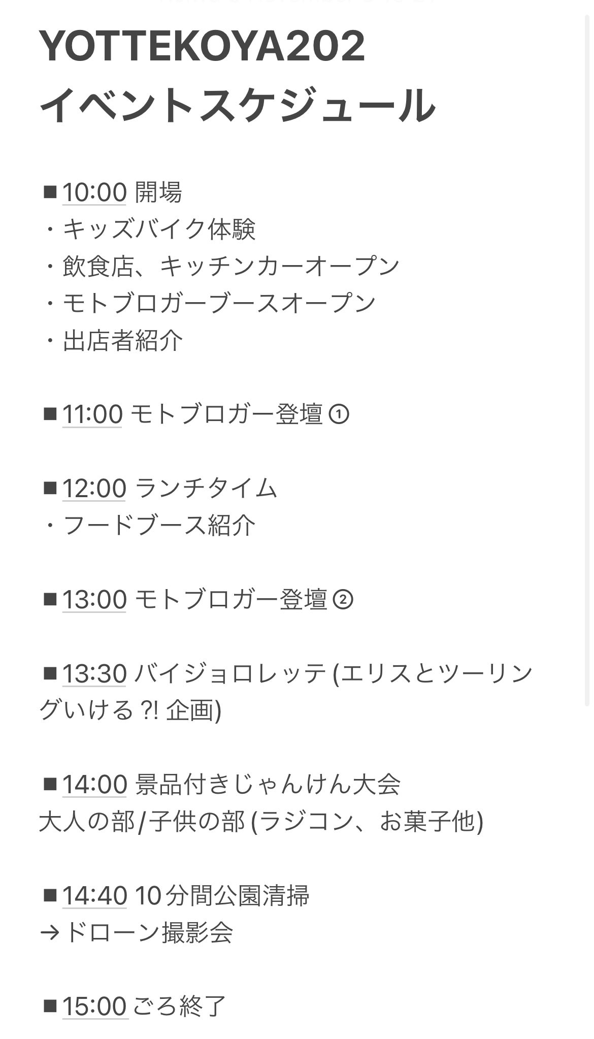 キッチンカーも8台ほど集まり、モトブロガーもたくさん集まるとのことで、家族で来ても楽しめると思います。