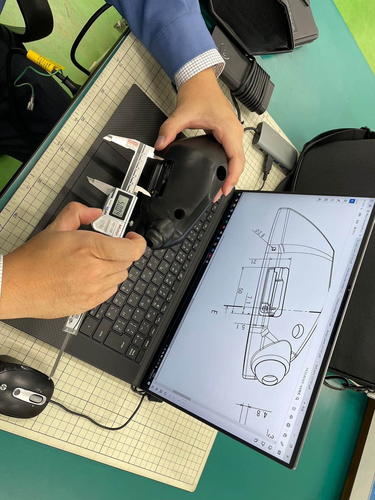 上記画像は取り出した成形品の精度の検査をしている状況です。