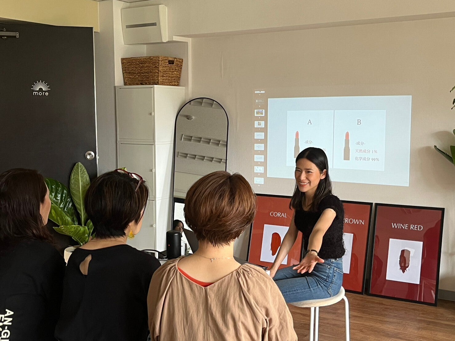 ご来場いただいた方に、体験会を通じて実際に口紅を手に取っていただき
