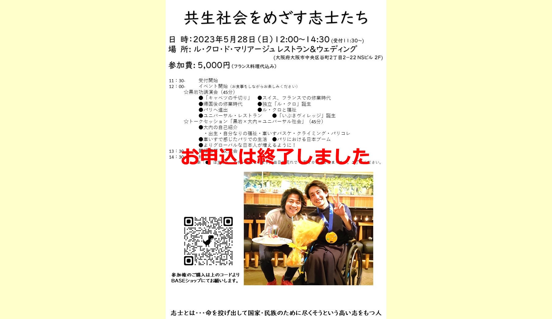 どんな講演になるか分からないですがお互い相方として『コラボ講演』します。ただこの日はすでに 満員御礼です。