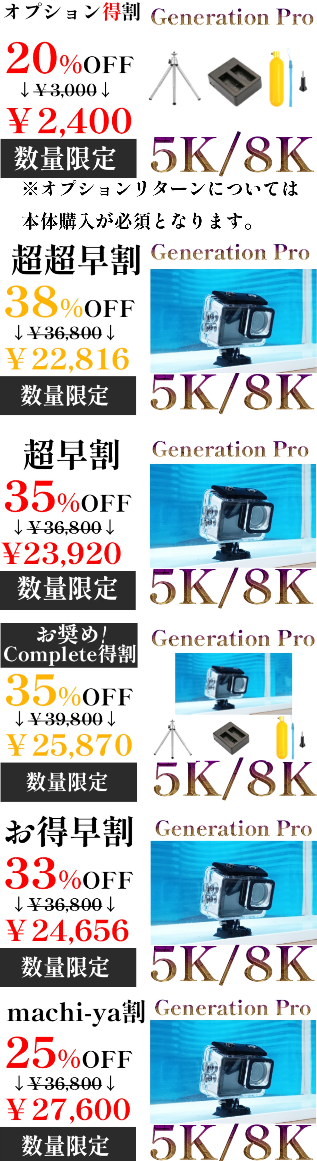 そんな思いを込めて発表させて頂きましたアクションカメラ【Generation Pro】をこのお得な期間にお試し頂ければ幸いです。