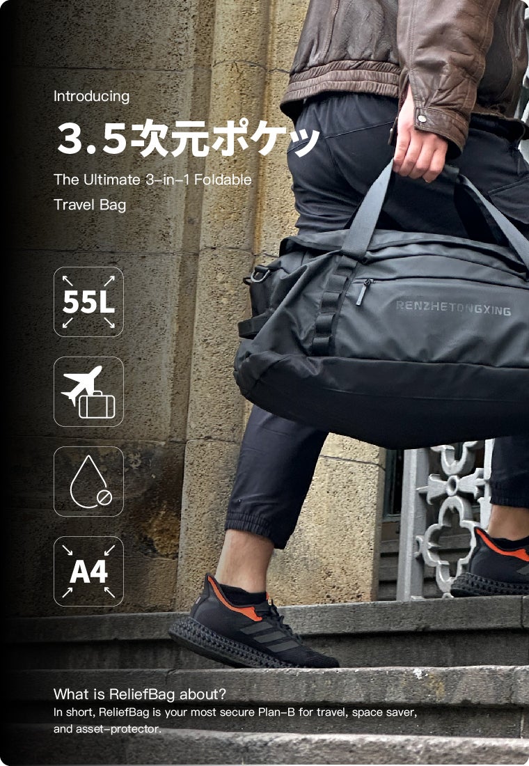 3.5次元ポケット:洗練された 3in1 折りたたみ式ボストンバッグ