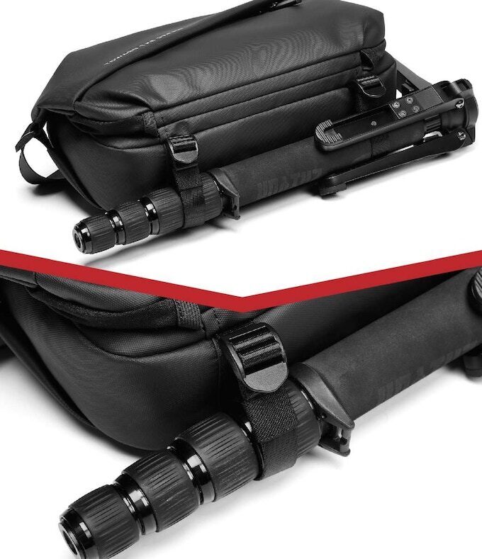 底部にあるストラップで長尺物を取り付けられます
