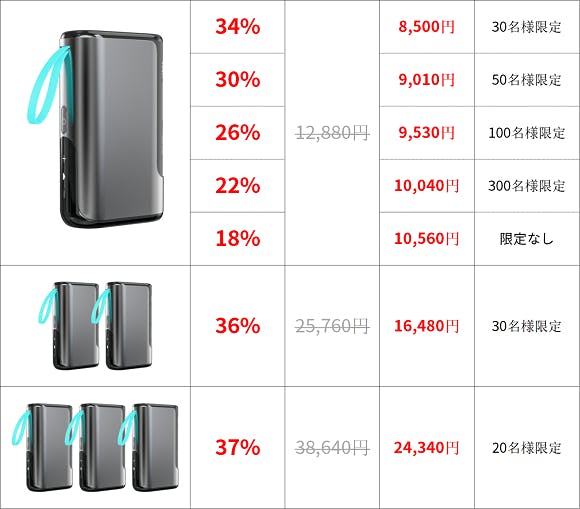 ※本プロジェクトを通して想定を上回る皆様からご支援を頂き、現在進めている環境から量産体制を更に整えることができた場合、正規販売価格が販売予定価格より下がる可能性もございます。