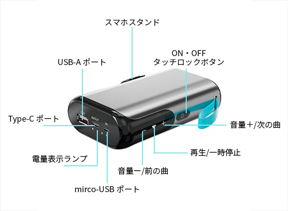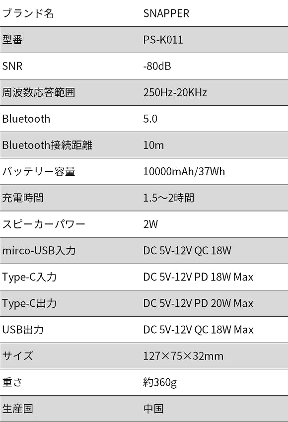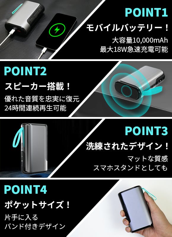 「PS-K011」は、10,000mAh/37W、最大18Wの急速充電に対応しているモバイルバッテリーです。通常のモバイルバッテリーとは異なり、「PS-K011」は忠実度の高いBluetoothスピーカーを備えており、スマホスタンドとしても使用可能。コンパクトなバンド付きデザインは持ち運びに便利です。