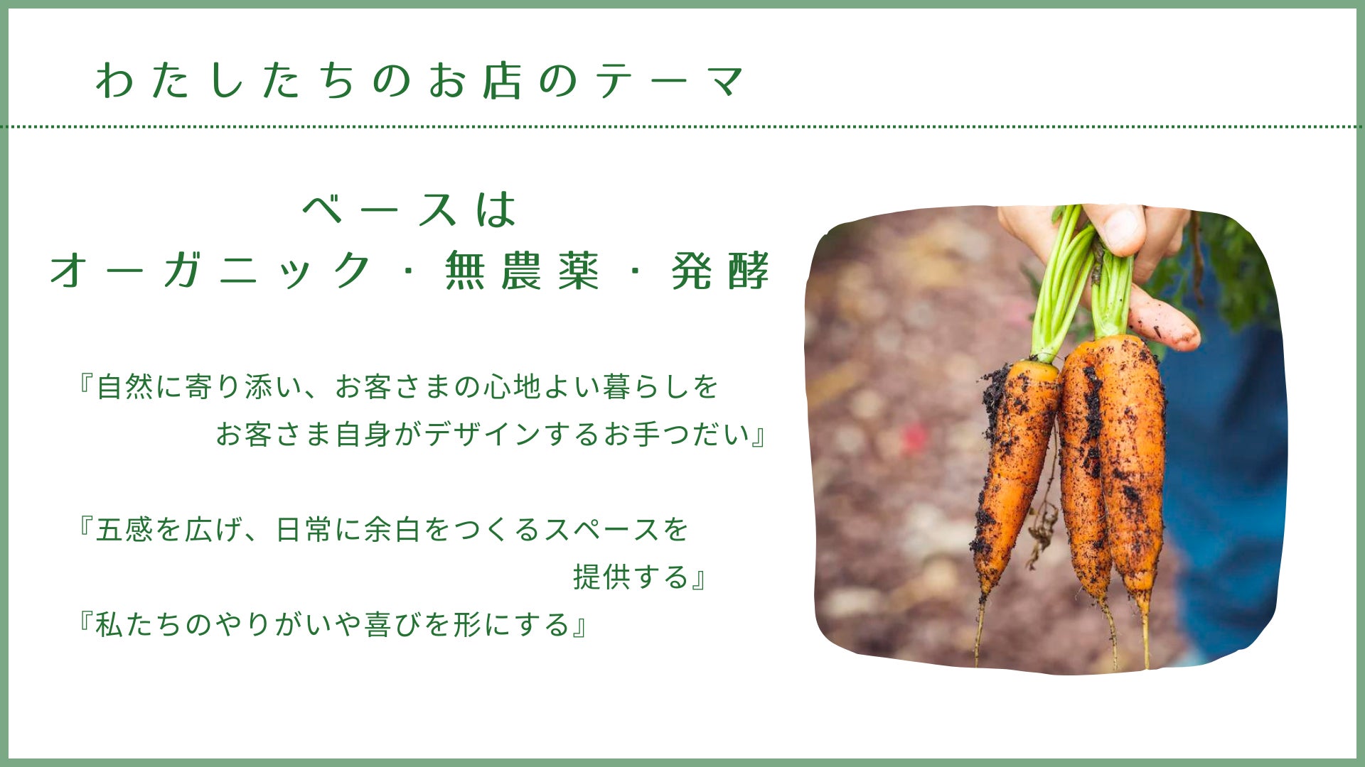 ◾️使用する食材は有機栽培、無農薬に限りません。慣行栽培の食材を使用する場合は