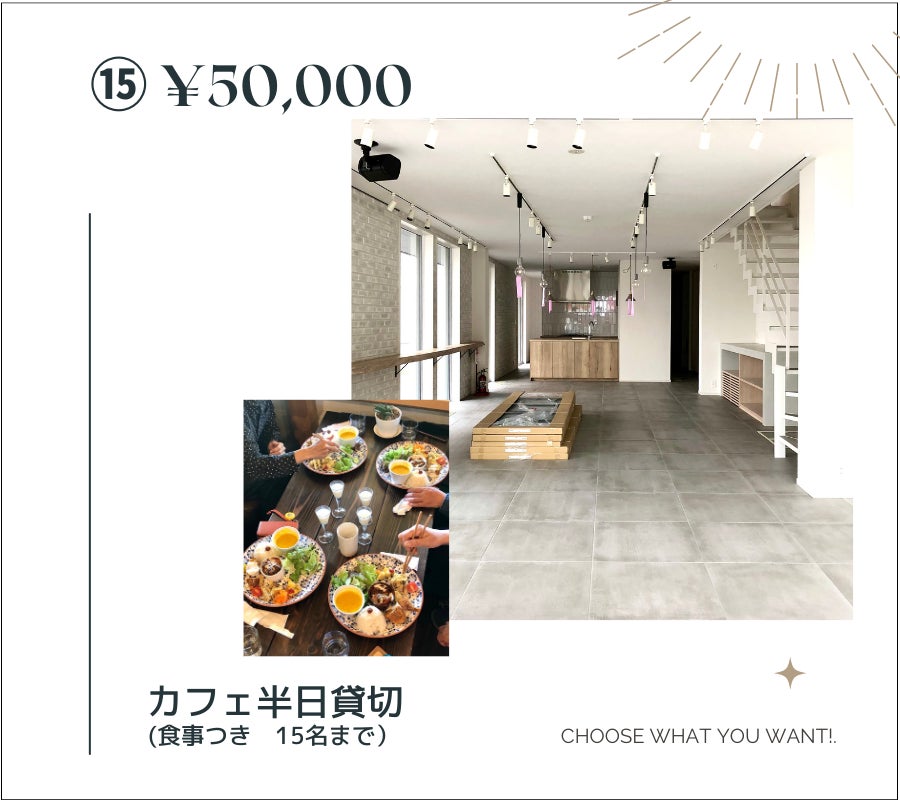 ⑮ ¥50,000 カフェ半日貸切(食事付き 15名まで)