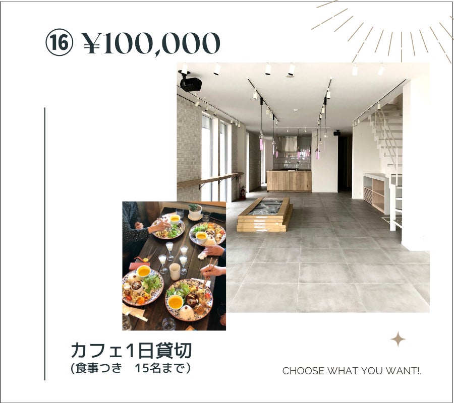 ⑯ ¥100,000 カフェ1日貸切(食事付き 15名まで)