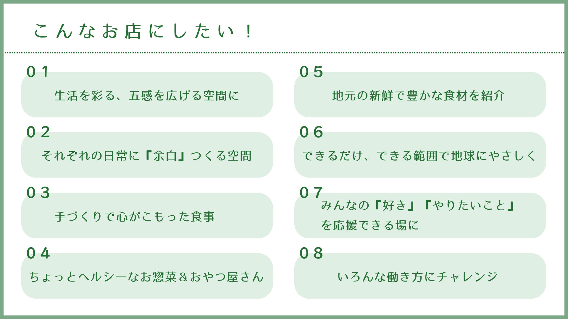 そして、こういうお店があればいいな。と思うのは、