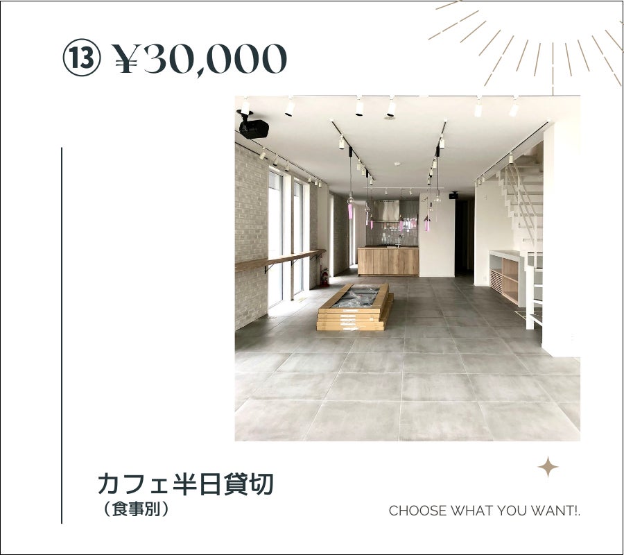 ⑮ ¥50,000 カフェ半日貸切(食事付き 15名まで)