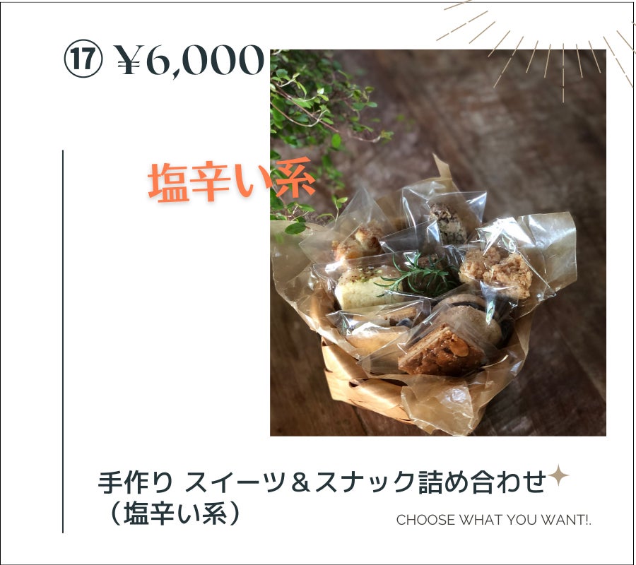 ⑰ 手作りスイーツ&スナック詰め合わせ(塩辛い系)