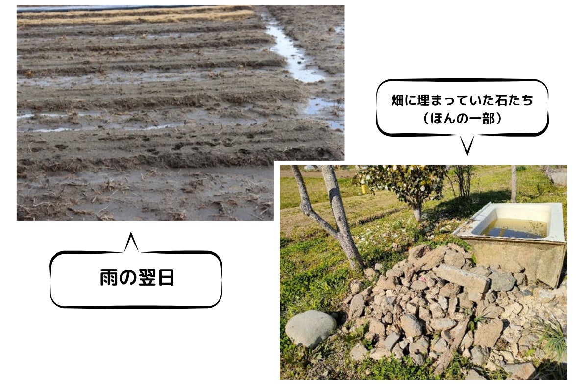 少し耕しただけでゴロゴロ出てくる大きな石。