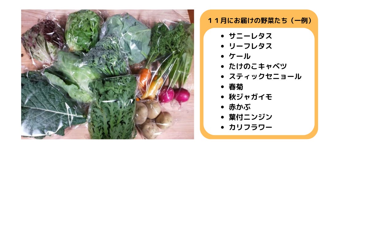 「いろいろな季のまま野菜を知ってもらいたい」という思いもありますので、『冬のおためし野菜セット』をリターンに追加させて頂きます。こちらはお届けまでに期間があいてしまいますので、特別な≪おまけつき≫とさせていただきます!