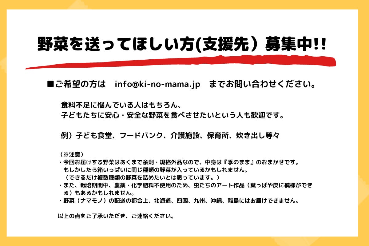■野菜を届けてほしい団体を募集したい。