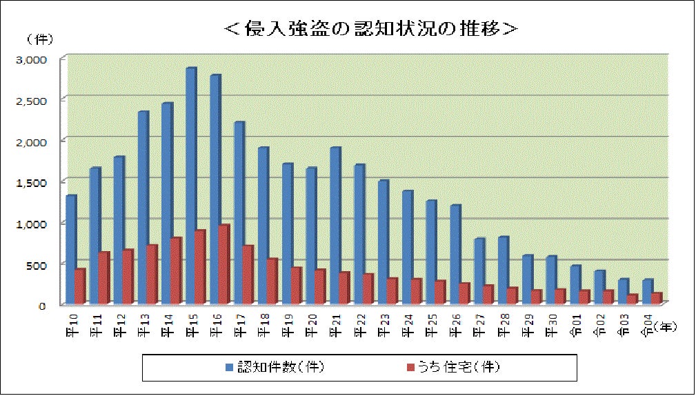 さらに、以前は都市の郊外で多かった空き巣や侵入強盗被害も、広範囲になってきております。