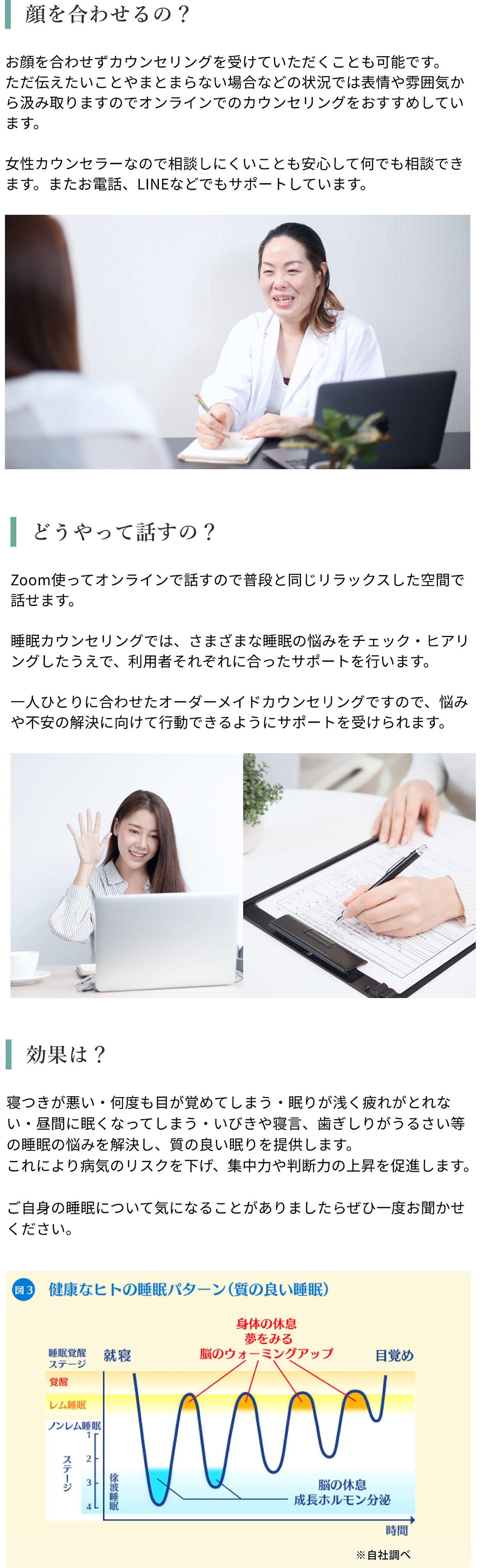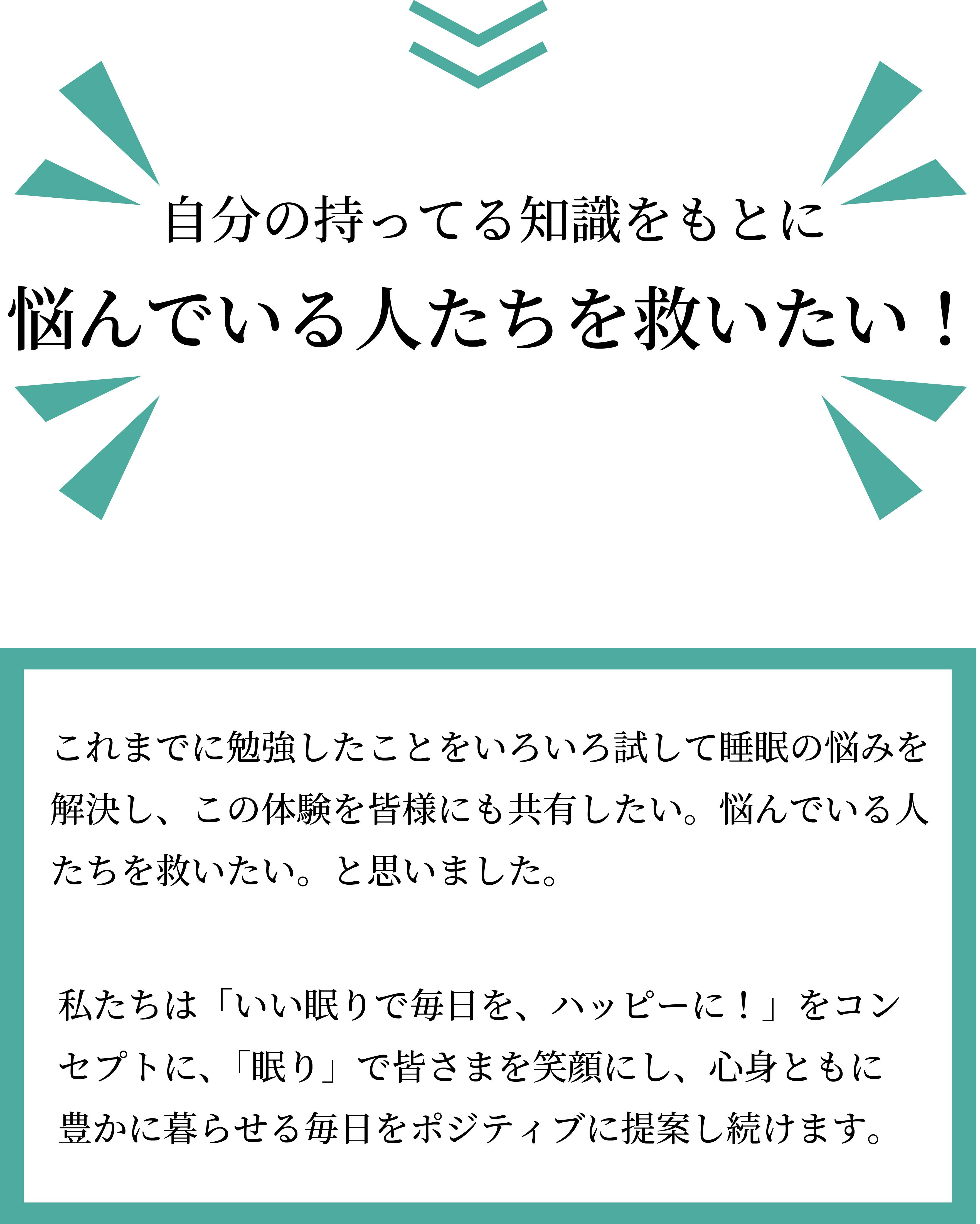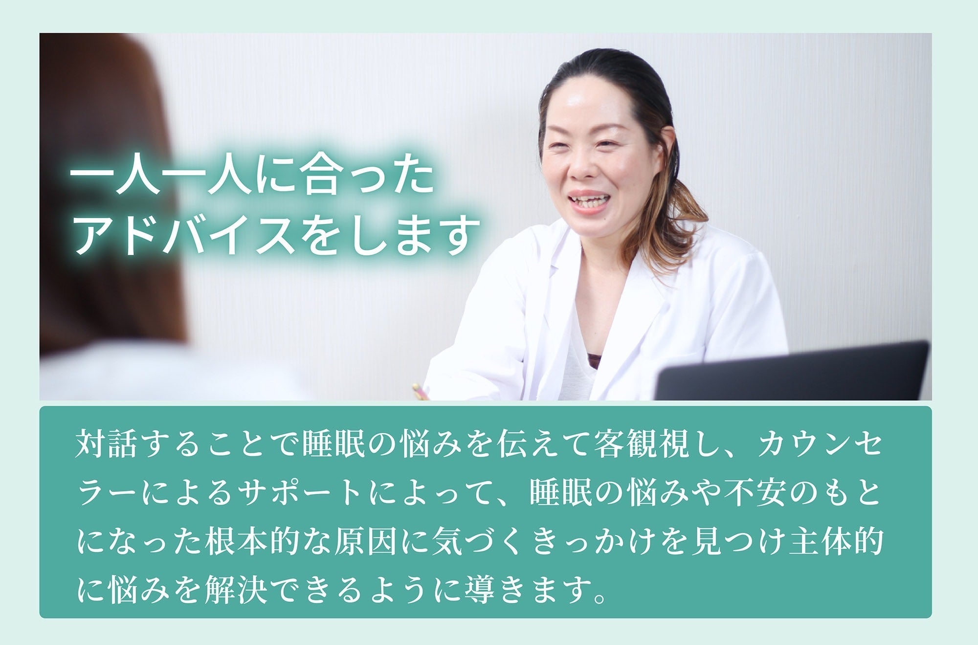 カウンセリングから快眠アイテムの開発、快眠アイテムの商品改善のために利用します。